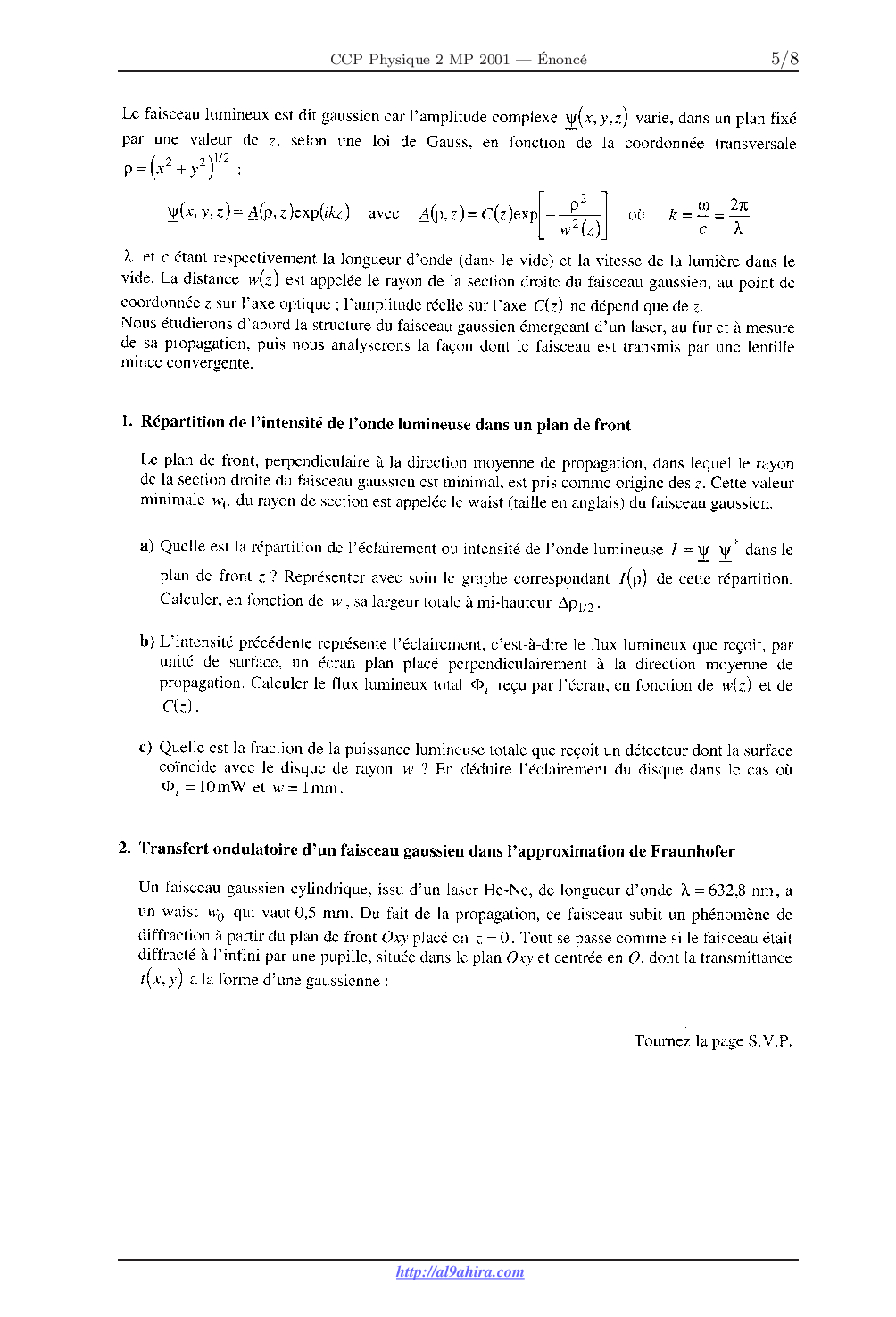 CCP Physique 2 MP 2001 Épreuve