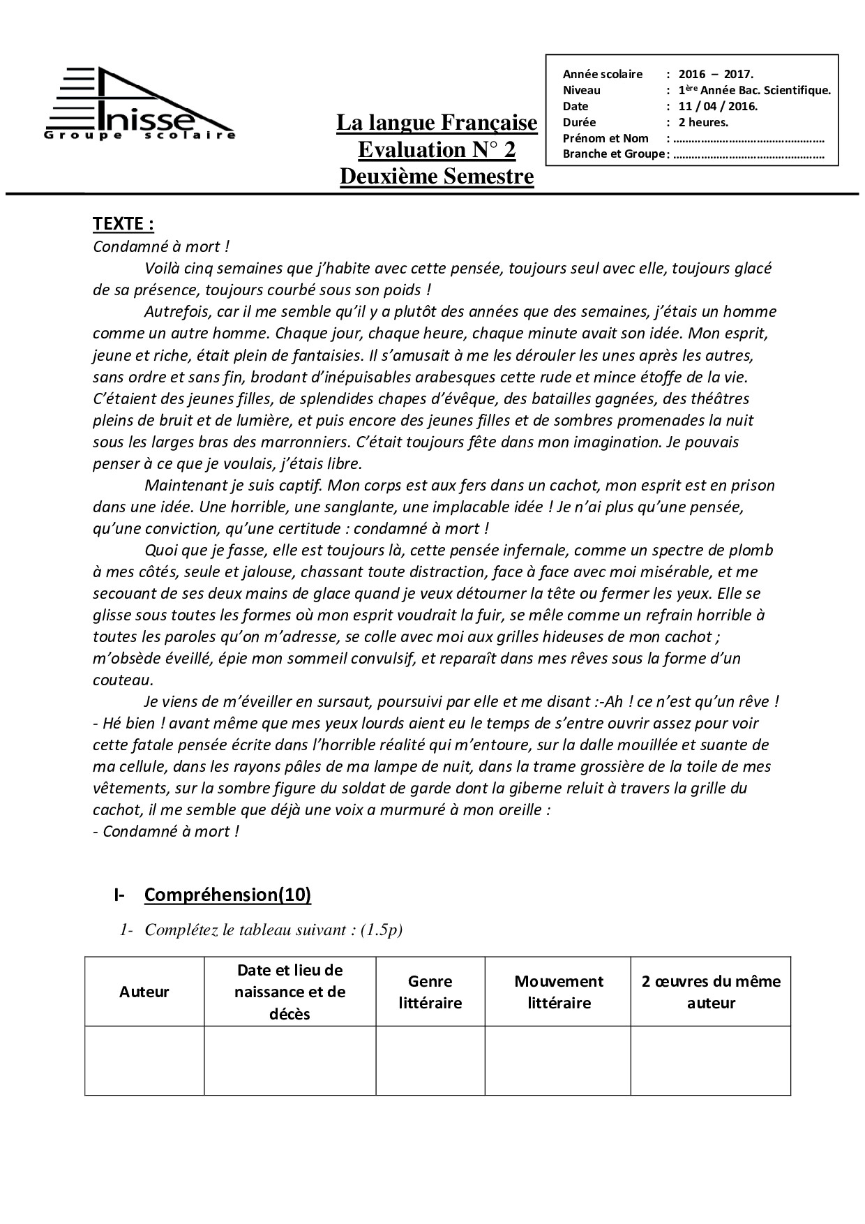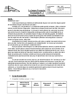 Devoir 2 Modèle 1 - Français 1er Bac Semestre 2
