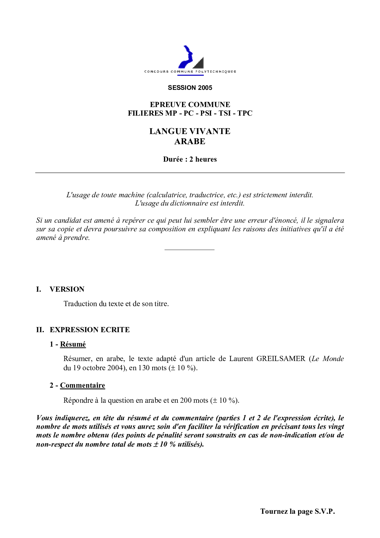 CCP 2005 Langues vivantes (Obligatoire)