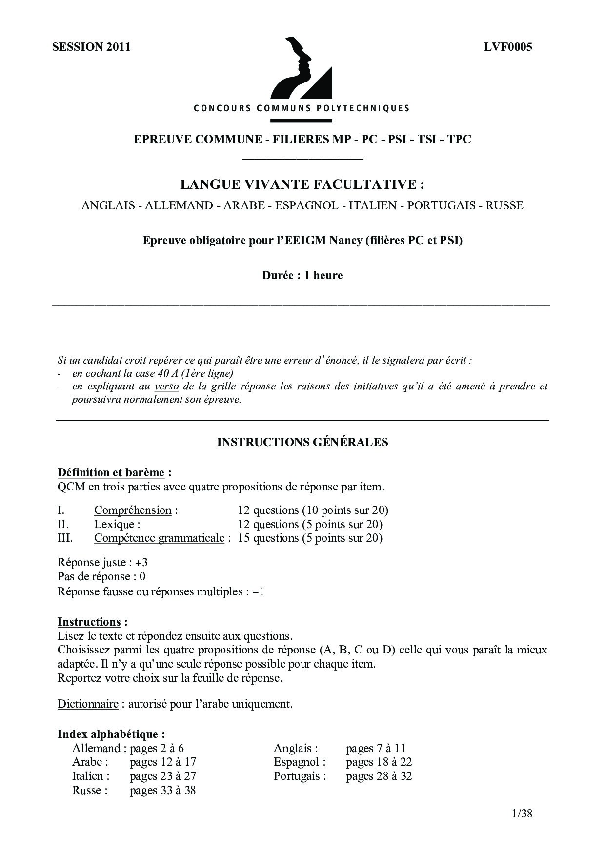CCP 2011 Langues vivantes (Facultatif)