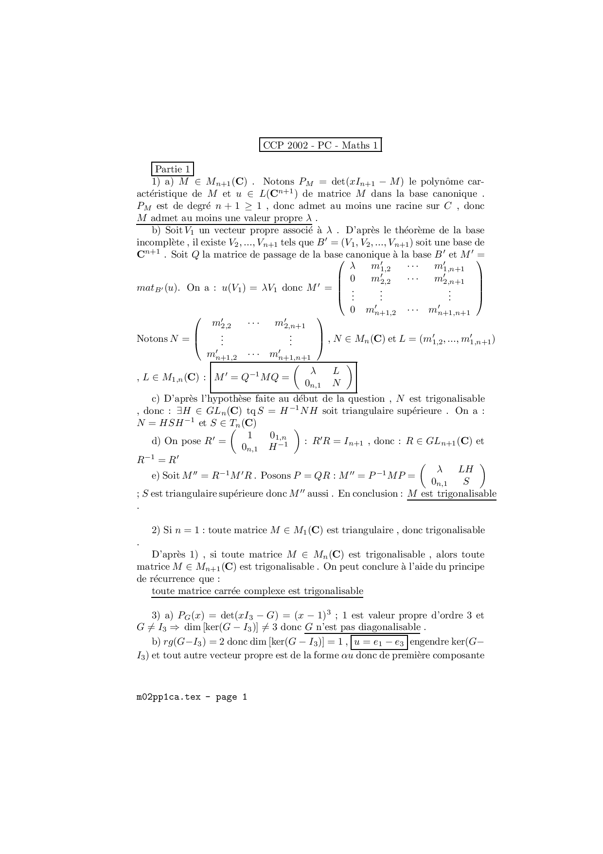 CCP 2002 PC Maths 1 Corrigé