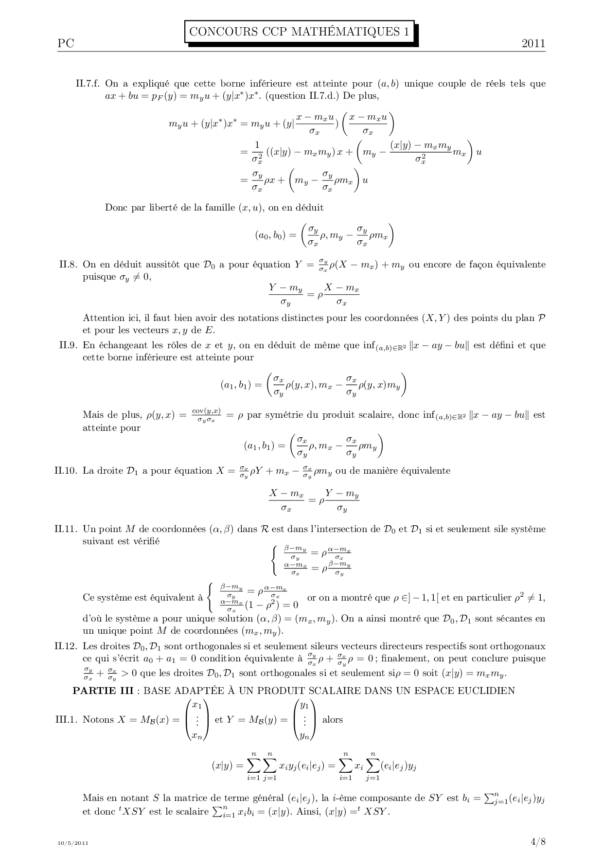 CCP 2011 PC Maths 1 Corrigé