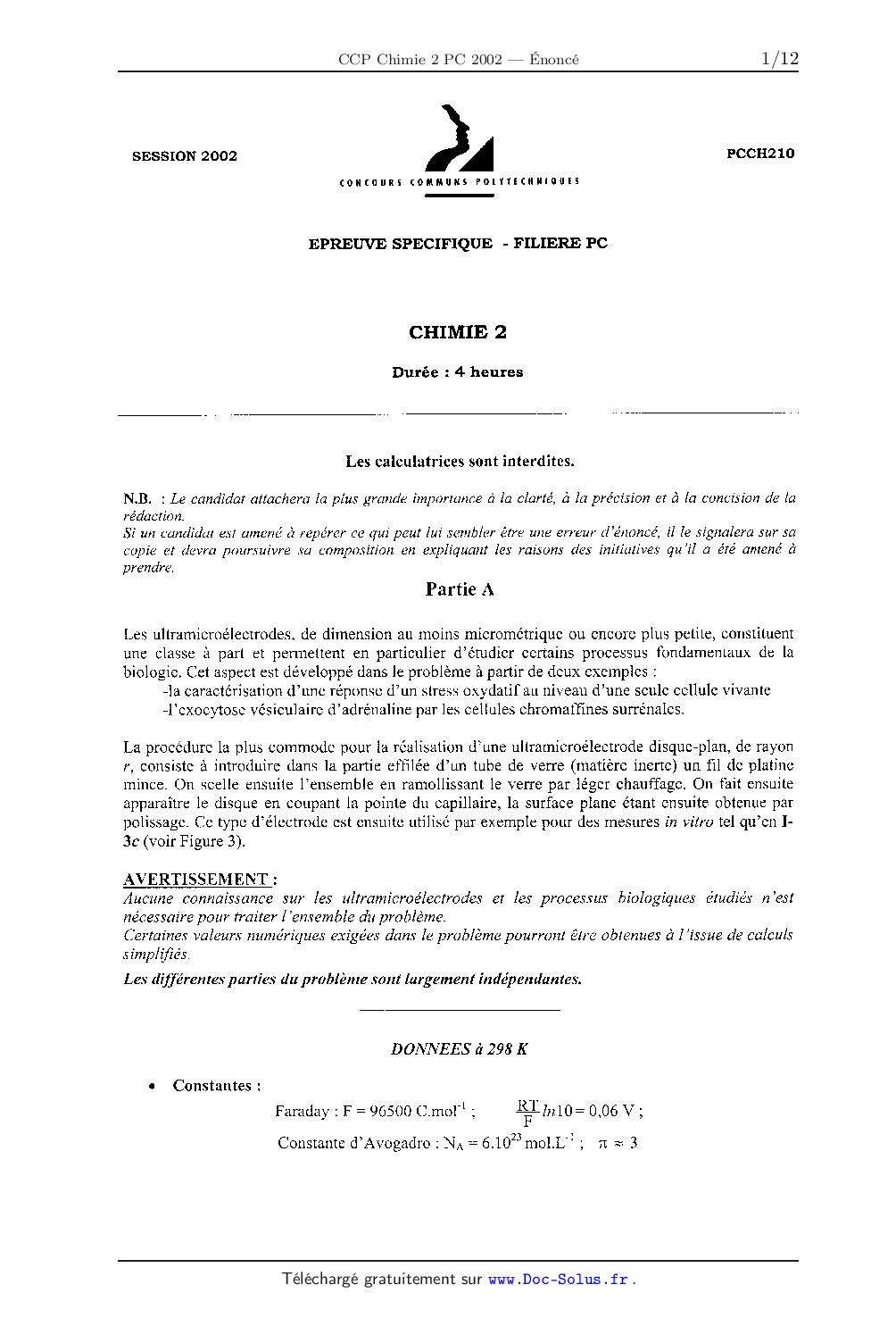 CCP 2002 PC Chimie 2 Epreuve