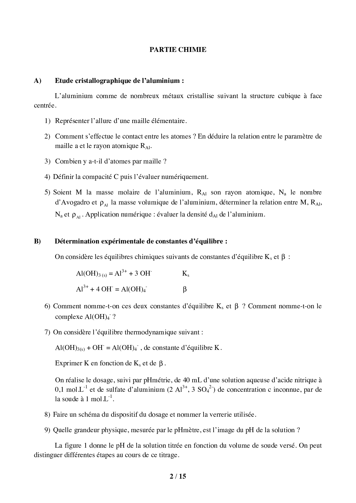 Concours Physique et Chimie PSI