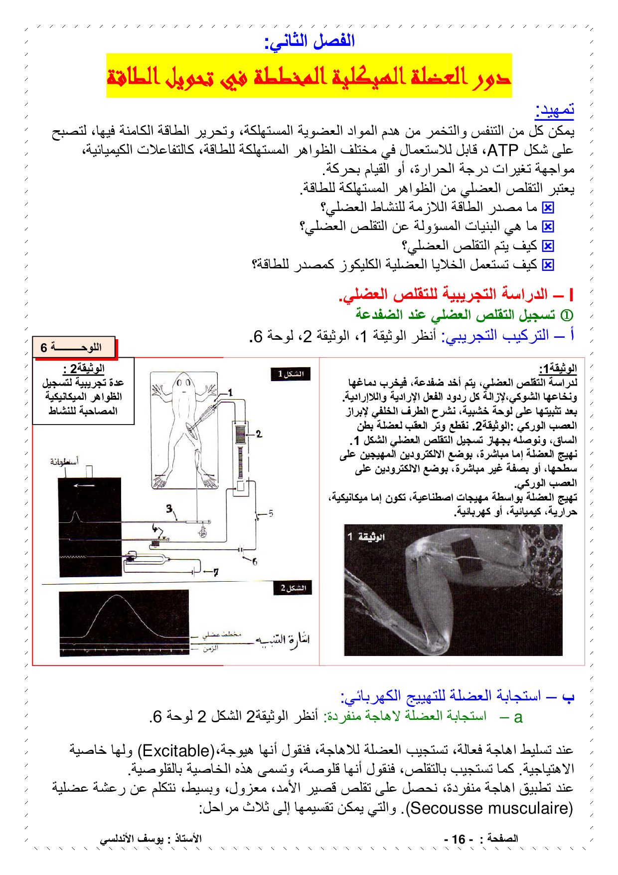دور العضلة المخططة الهيكلية في تحويل الطاقة - الدرس