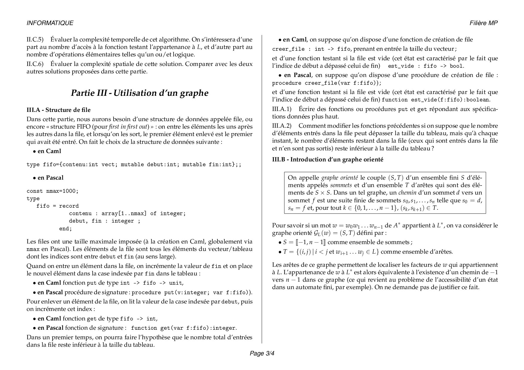 Concours Informatique MP