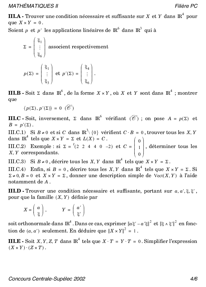 Centrale-Supelec PC 2002 Maths 2 Epreuve