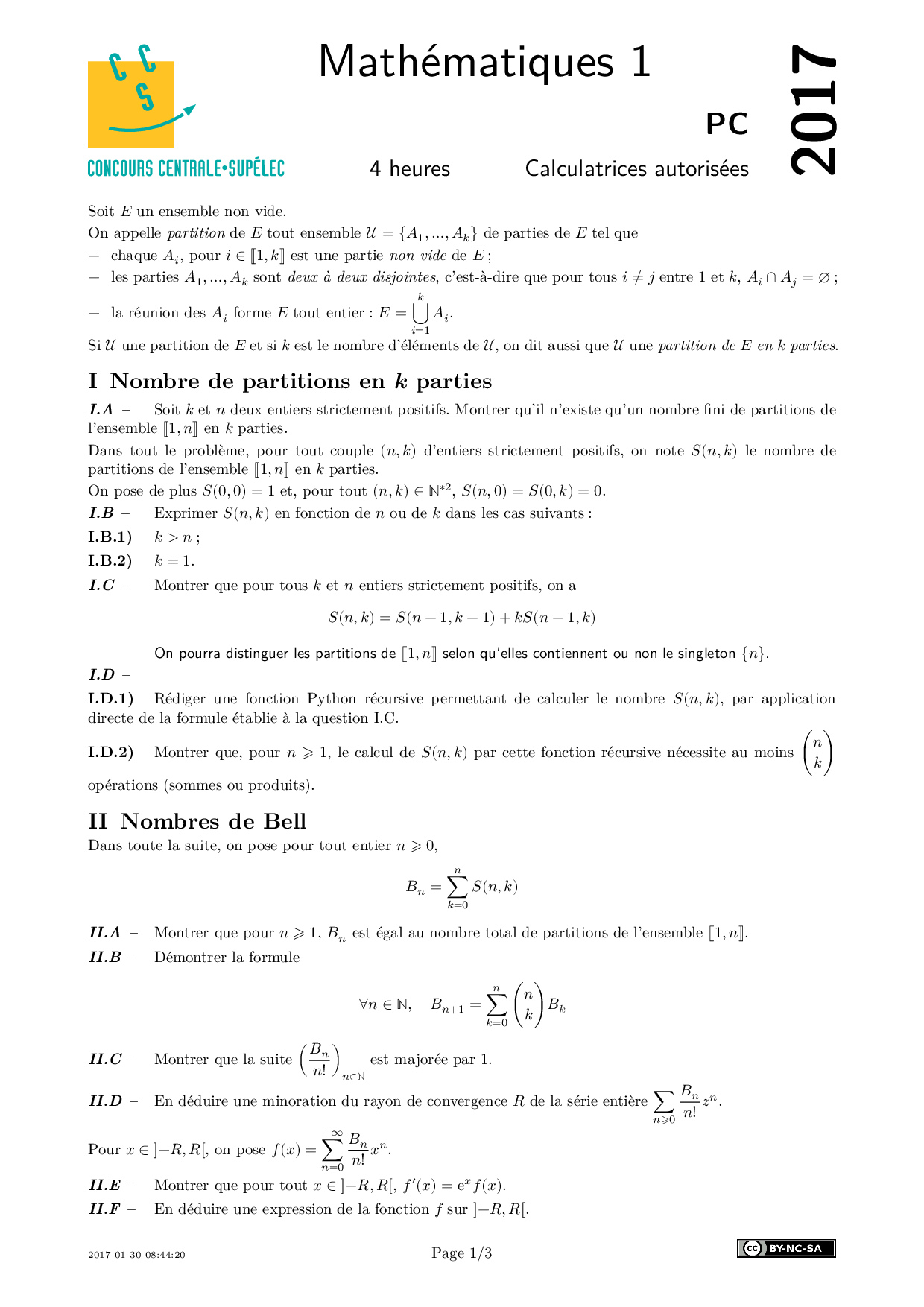 Centrale-Supelec PC 2017 Maths 1 Epreuve