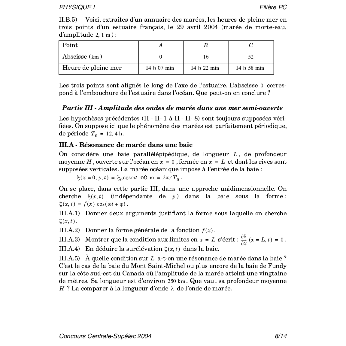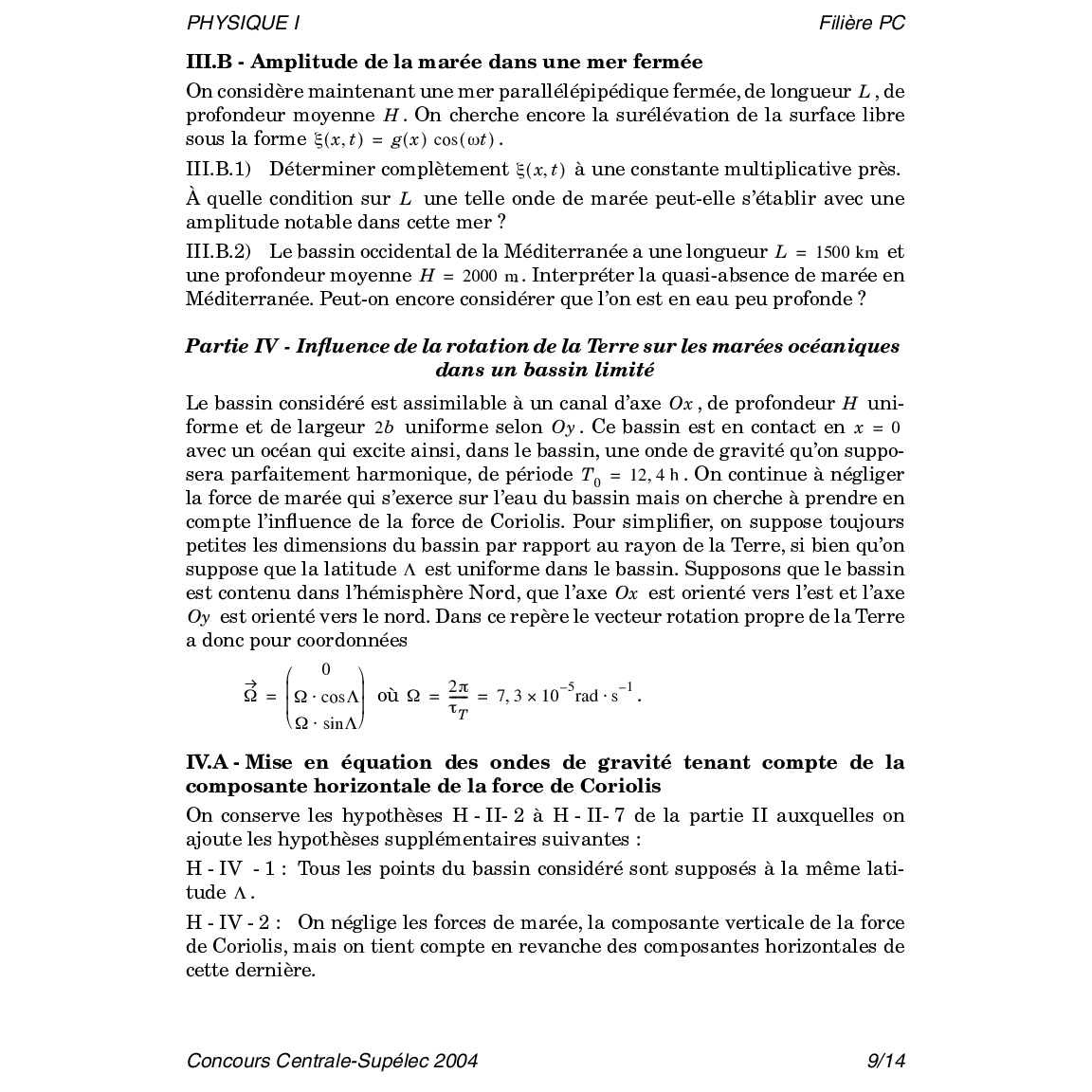 Centrale-Supelec PC 2004 Physique 1 Epreuve