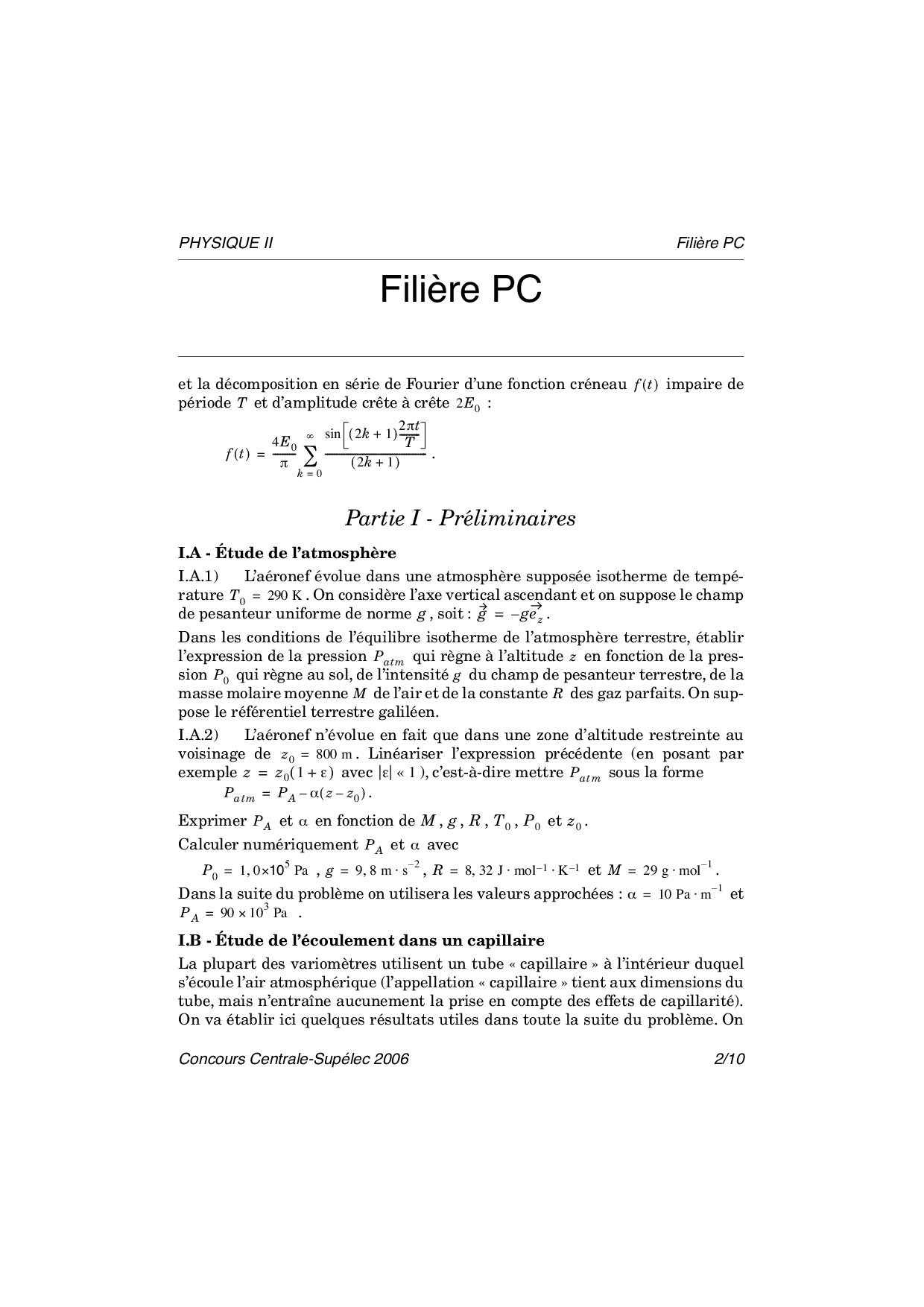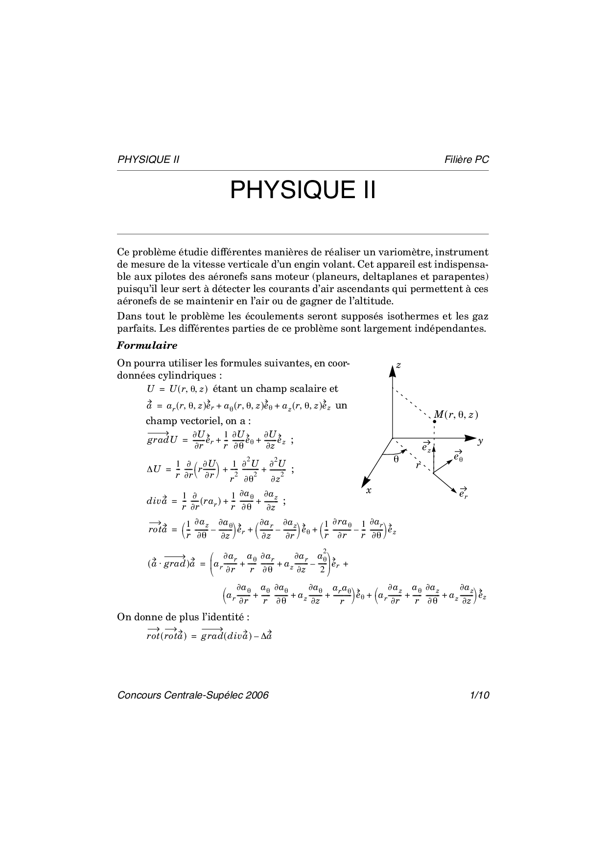 Centrale-Supelec PC 2006 Physique 2 Epreuve