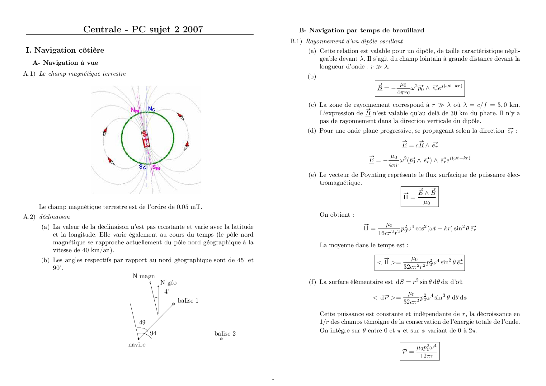 Centrale-Supelec PC 2007 Physique 2 Corrigé