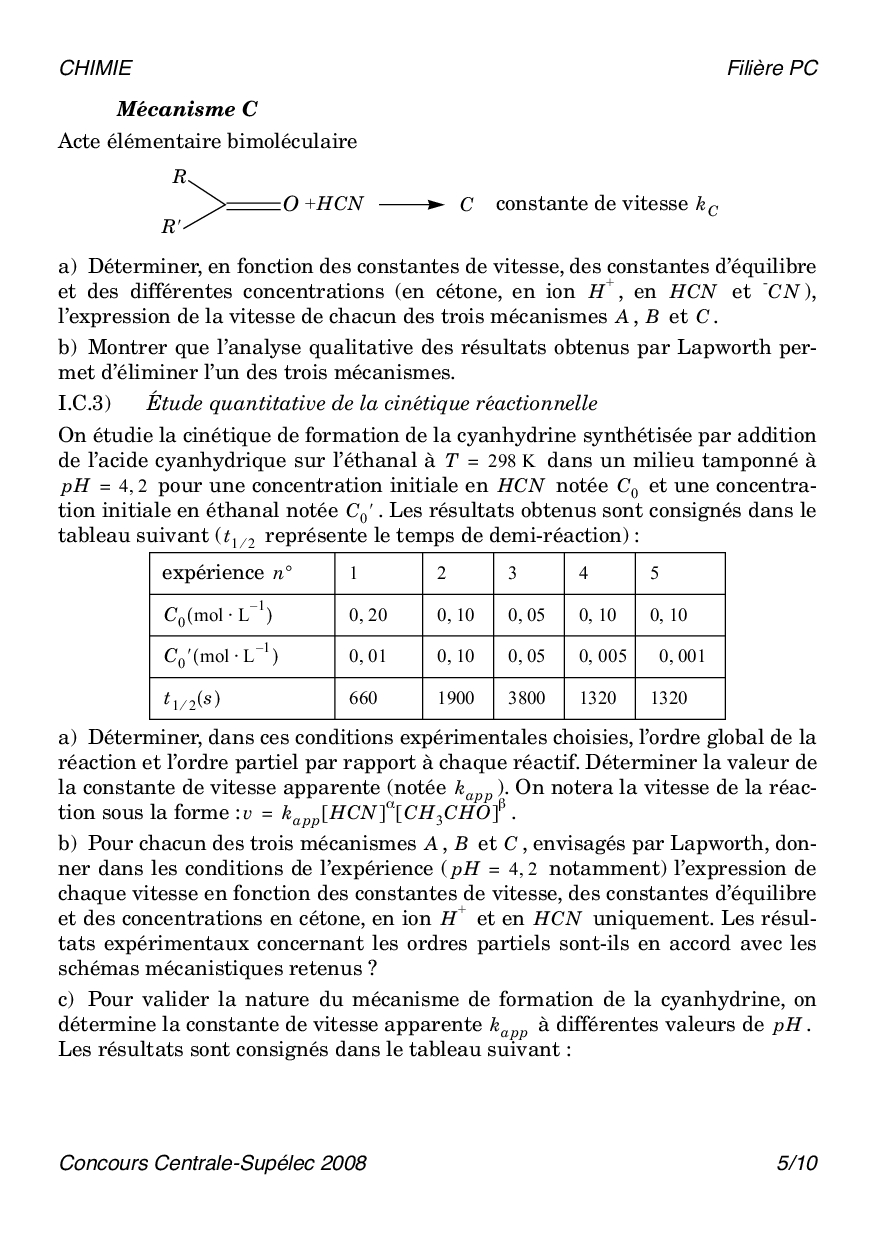 Centrale-Supelec PC 2008 Chimie Epreuve
