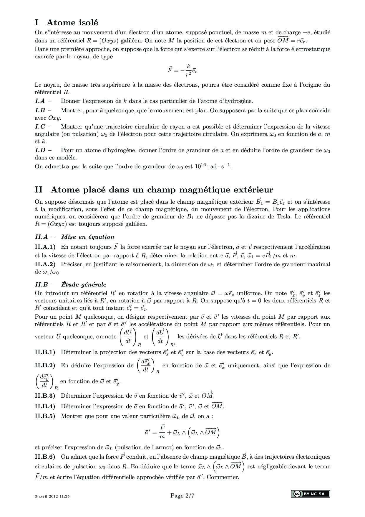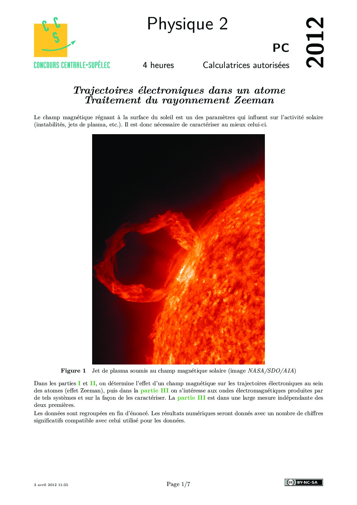Centrale-Supelec PC 2012 Physique 2 Epreuve