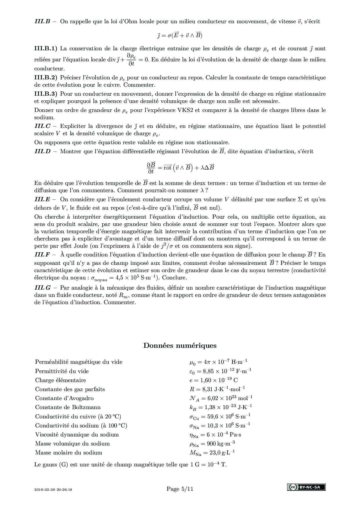 Centrale-Supelec PC 2016 Physique 1 Epreuve