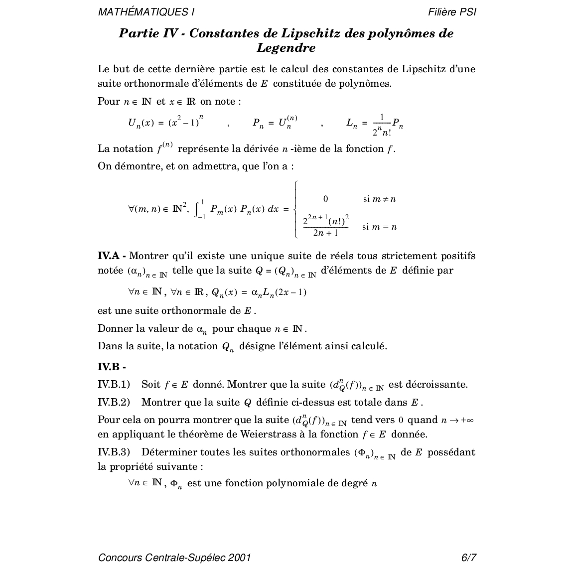 Centrale-Supelec PSI 2001 Maths 1 Epreuve