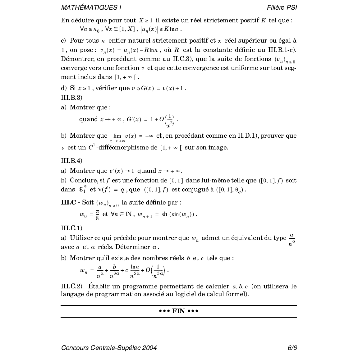 Centrale-Supelec PSI 2004 Maths 1 Epreuve