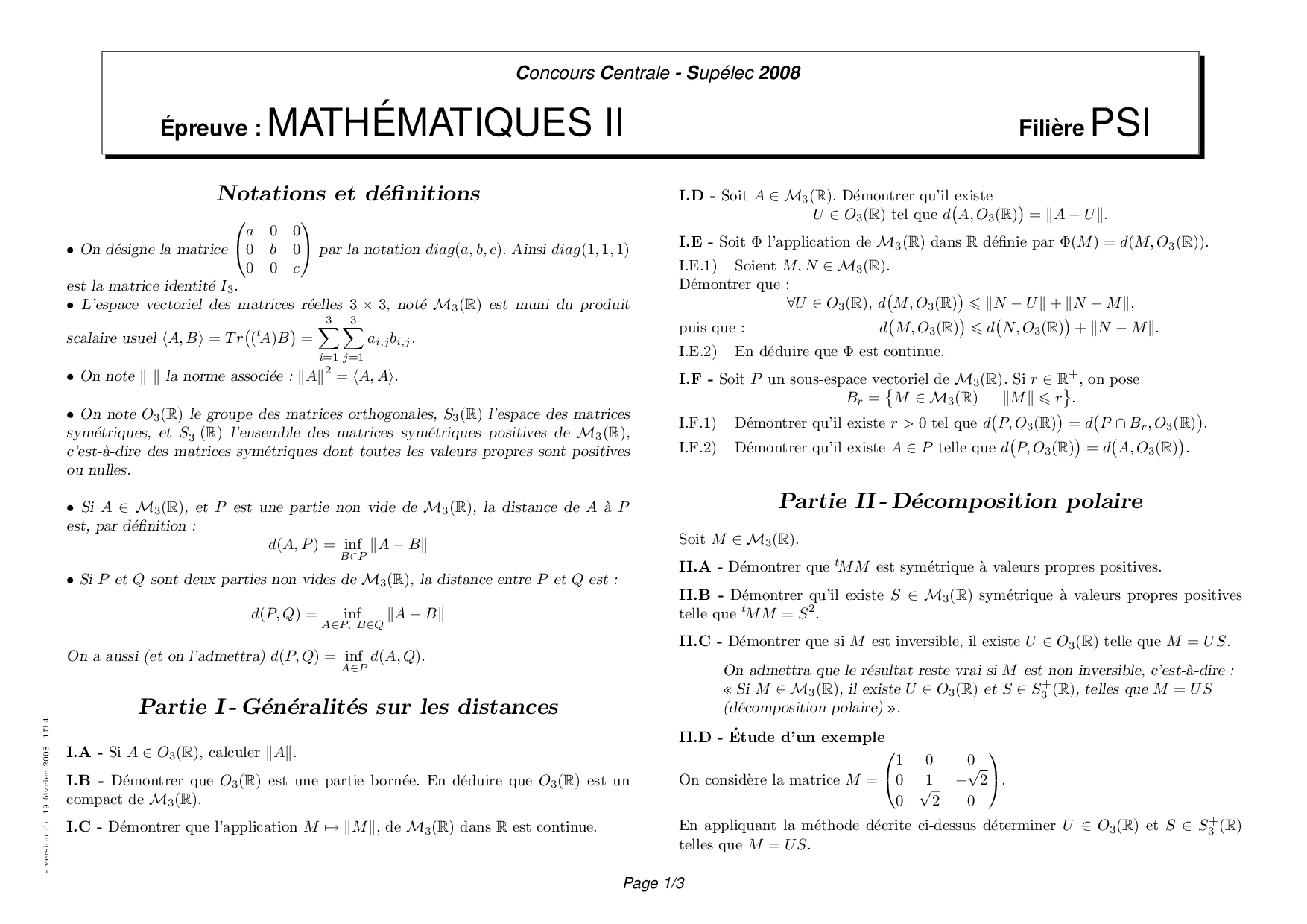 Centrale-Supelec PSI 2008 Maths 2 Epreuve