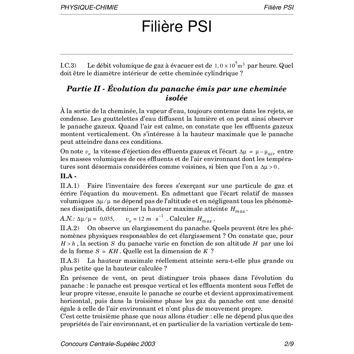 Centrale-Supelec PSI 2003 Physique-Chimie Epreuve