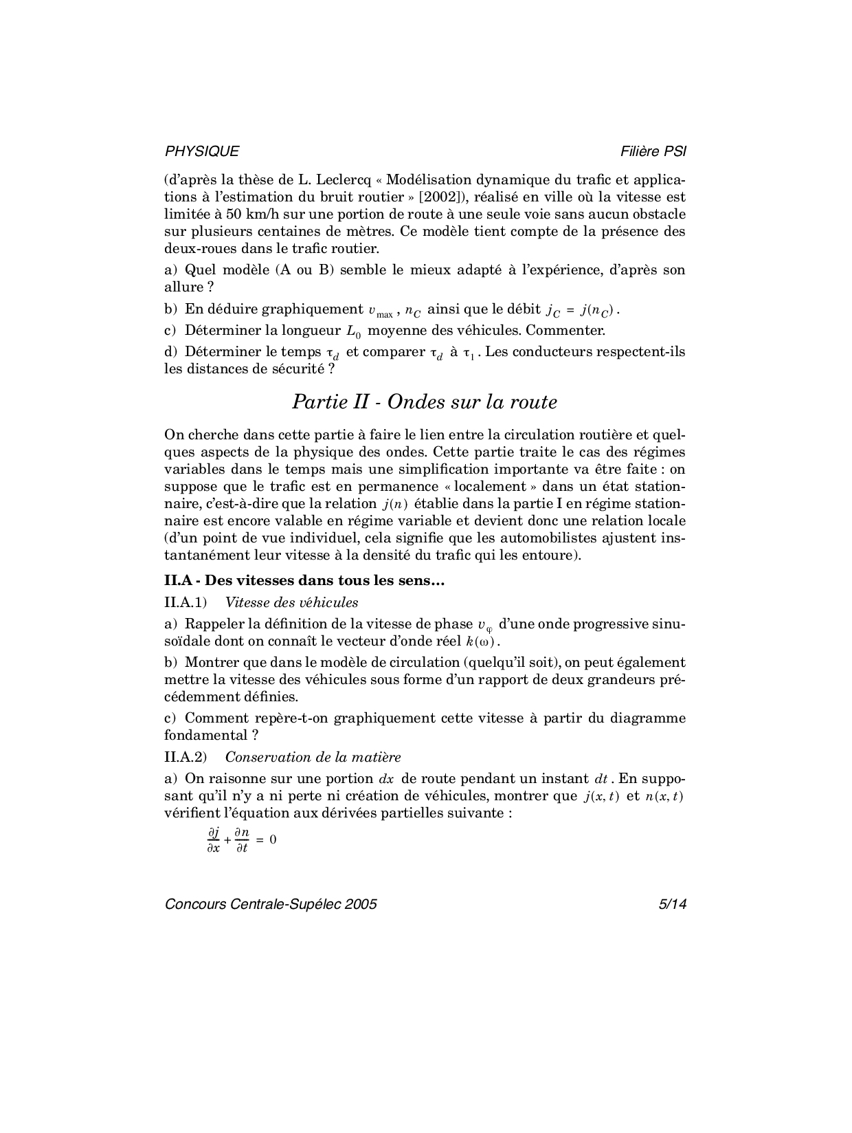 Centrale-Supelec PSI 2005 Physique Epreuve