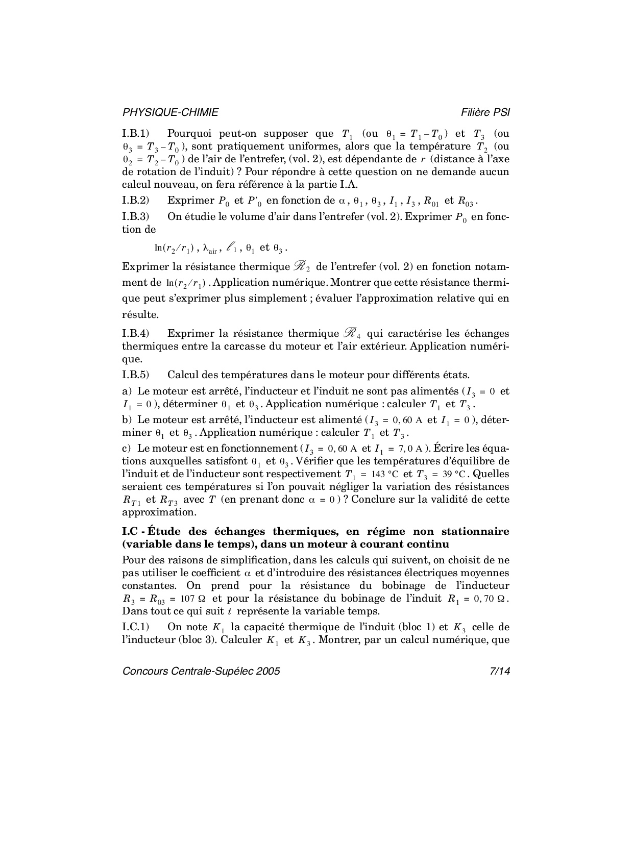 Centrale-Supelec PSI 2005 Physique-Chimie Epreuve