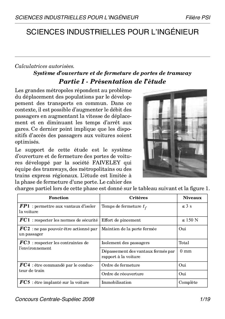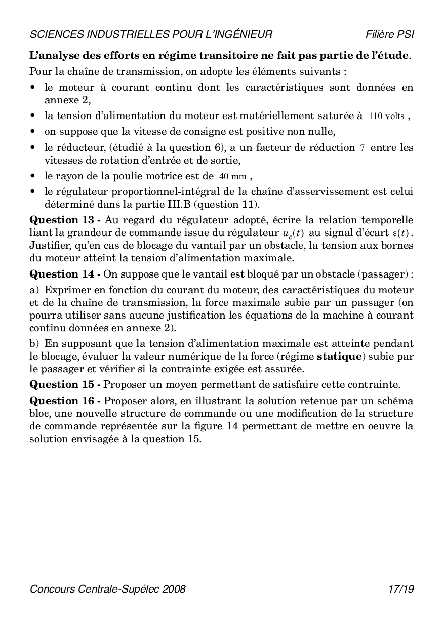 Centrale-Supelec PSI 2008 SII Epreuve
