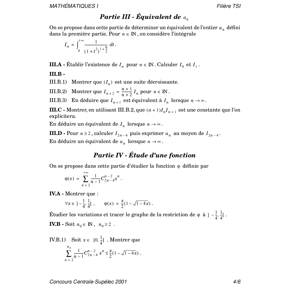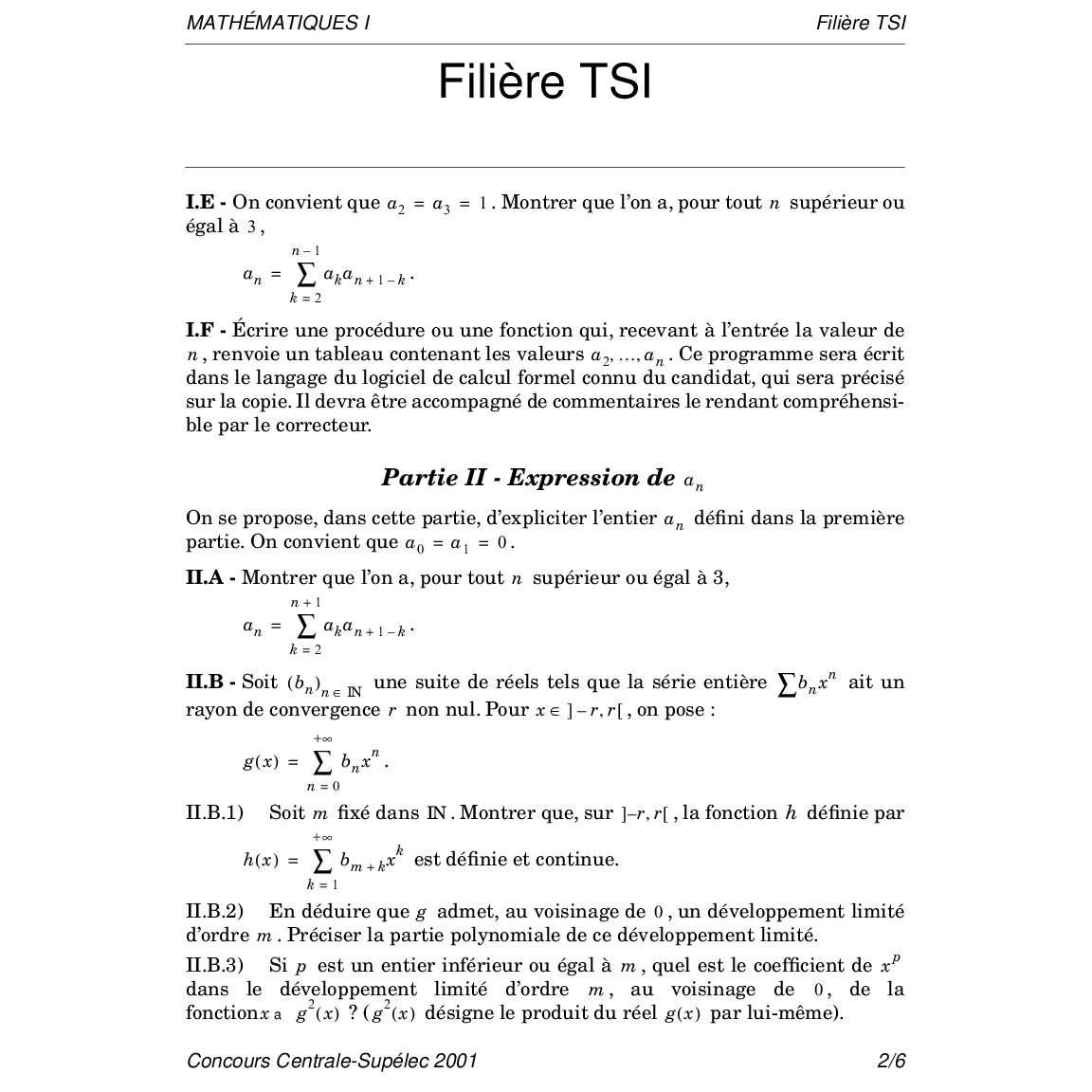 Centrale-Supelec TSI 2001 Maths 1 Epreuve