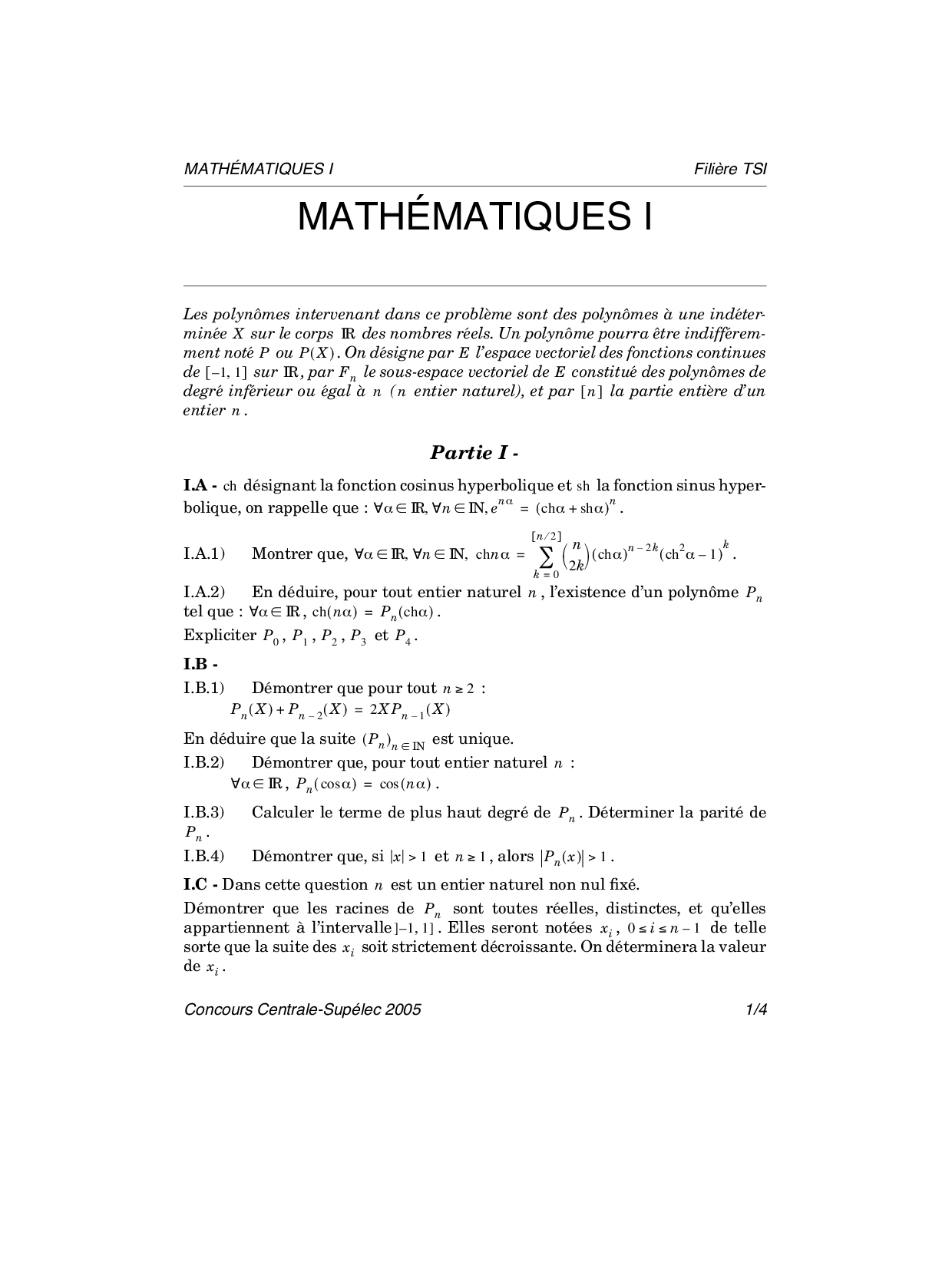 Centrale-Supelec TSI 2005 Maths 1 Epreuve