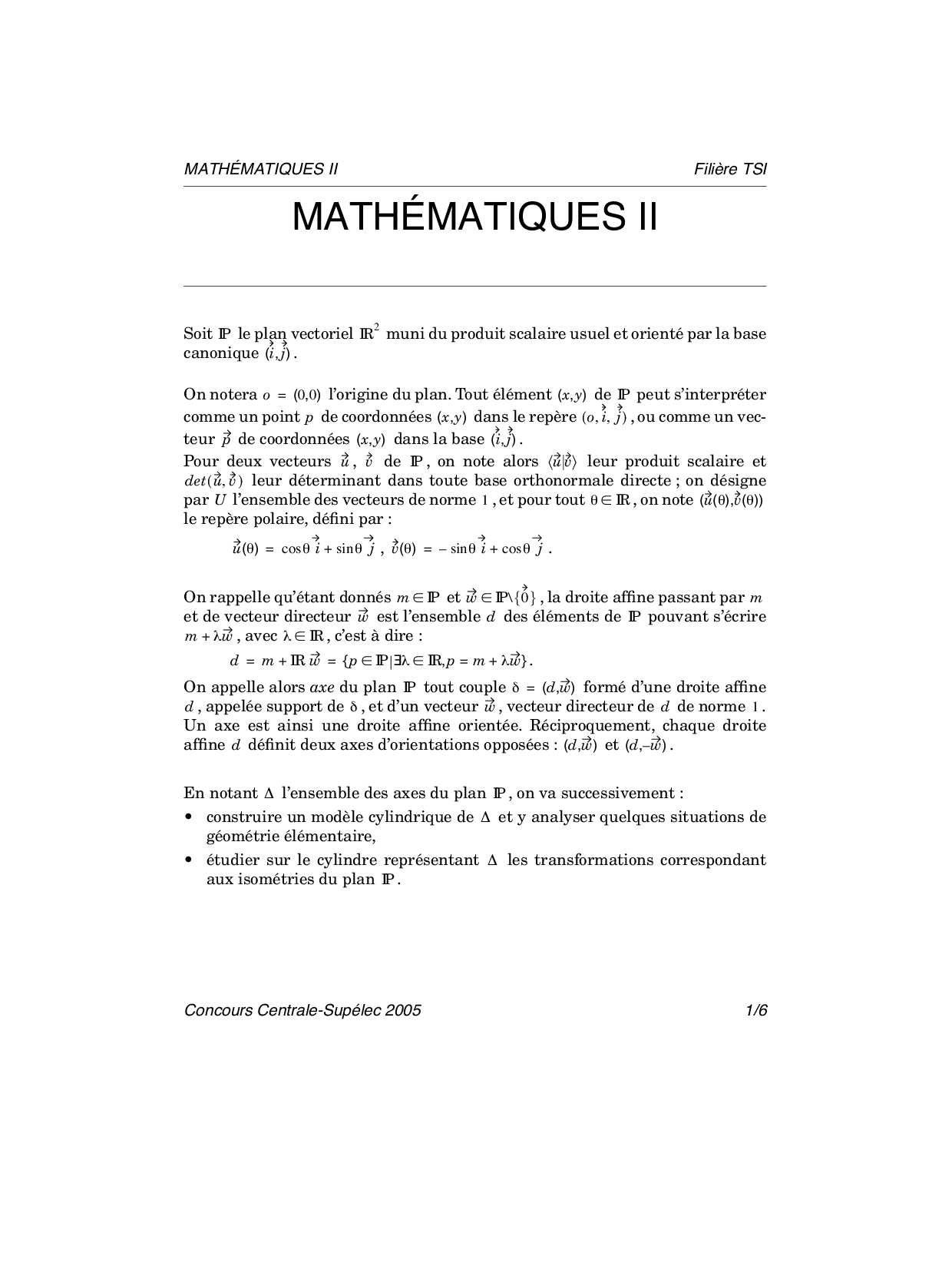 Centrale-Supelec TSI 2005 Maths 2 Epreuve