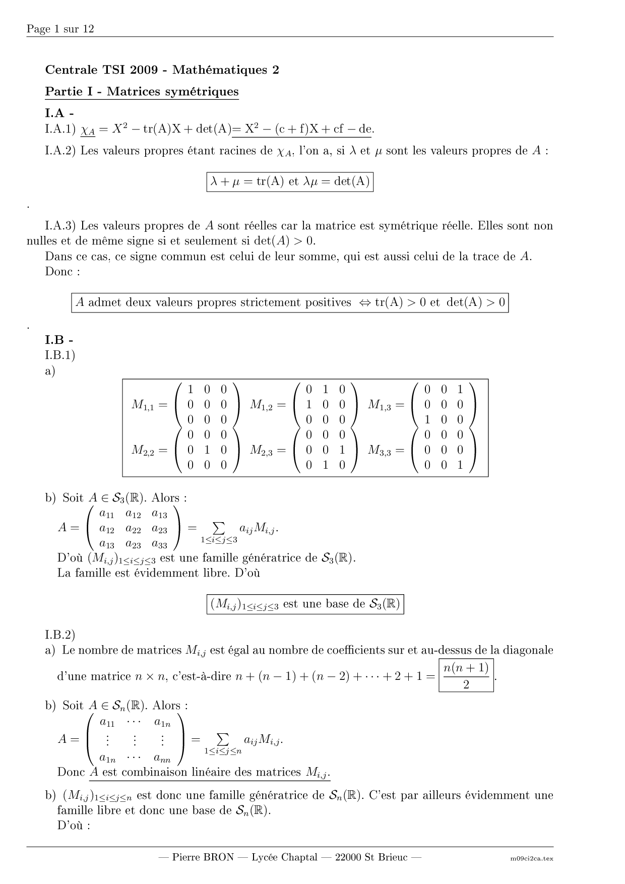 Centrale-Supelec TSI 2009 Maths 2 Corrigé