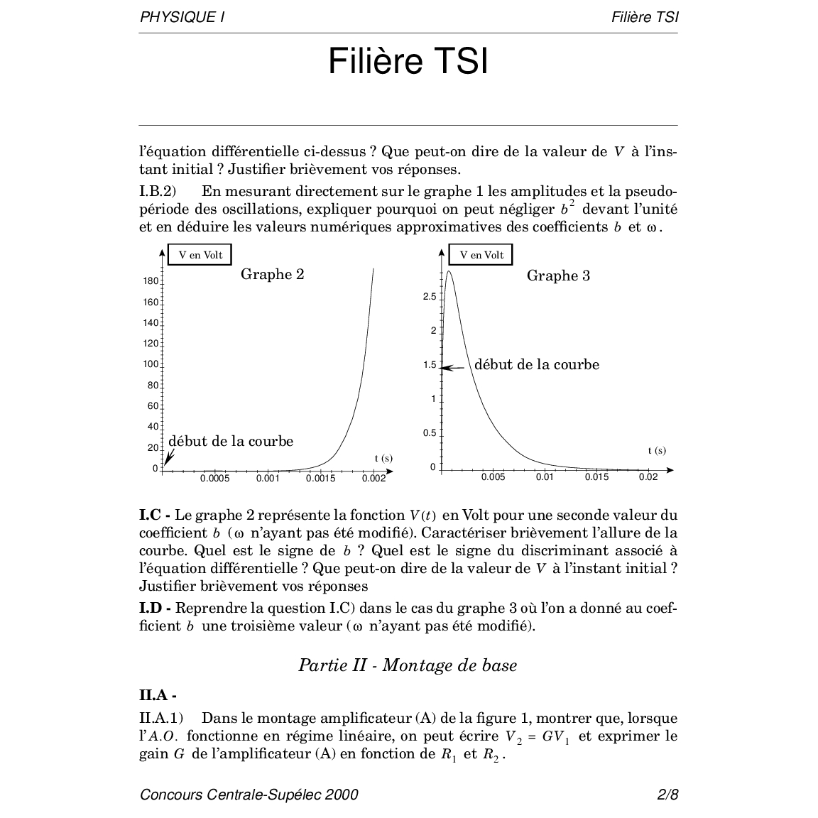 Centrale-Supelec TSI 2000 Physique 1 Epreuve