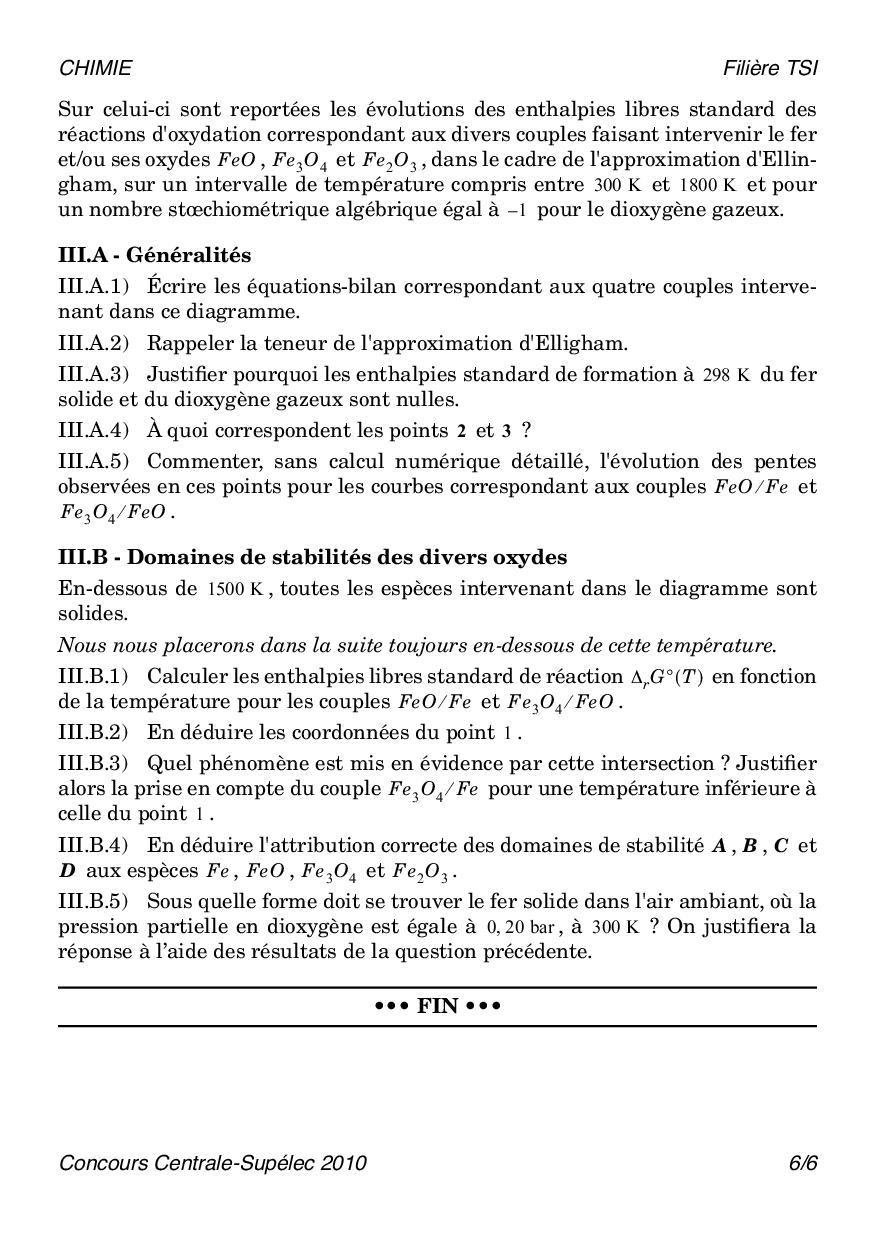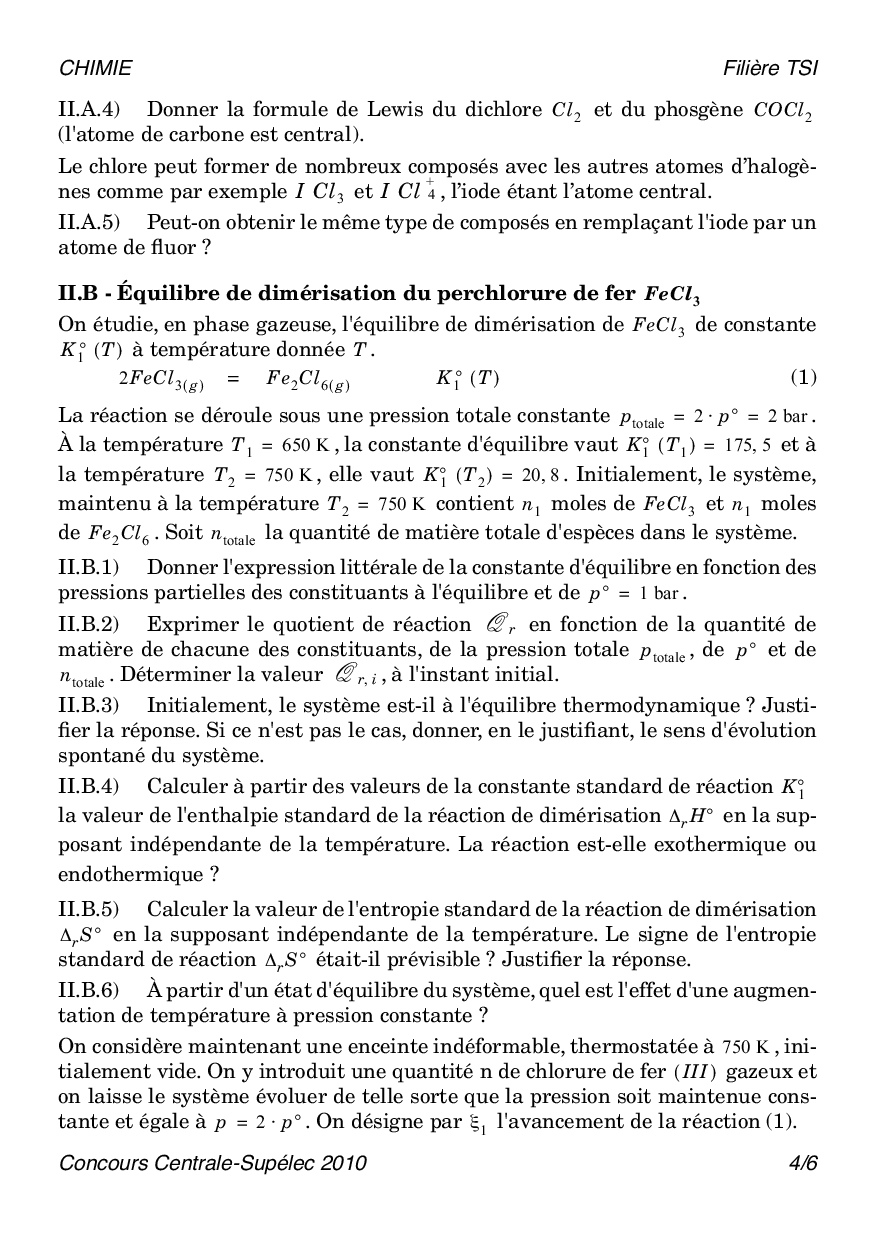 Centrale-Supelec TSI 2010 Chimie Epreuve