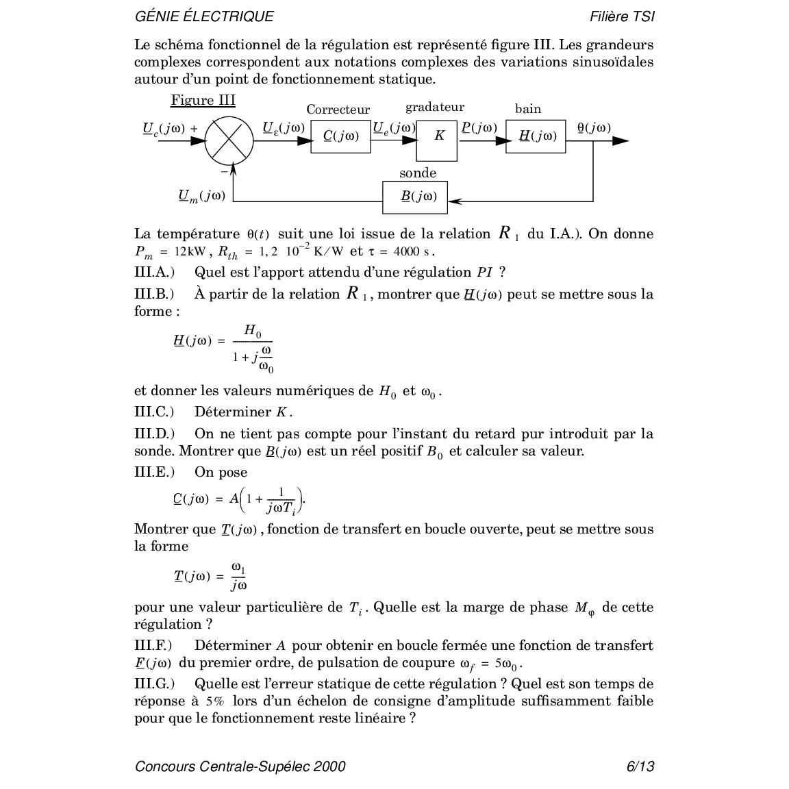 Centrale-Supelec TSI Génie électrique 2000 Epreuve