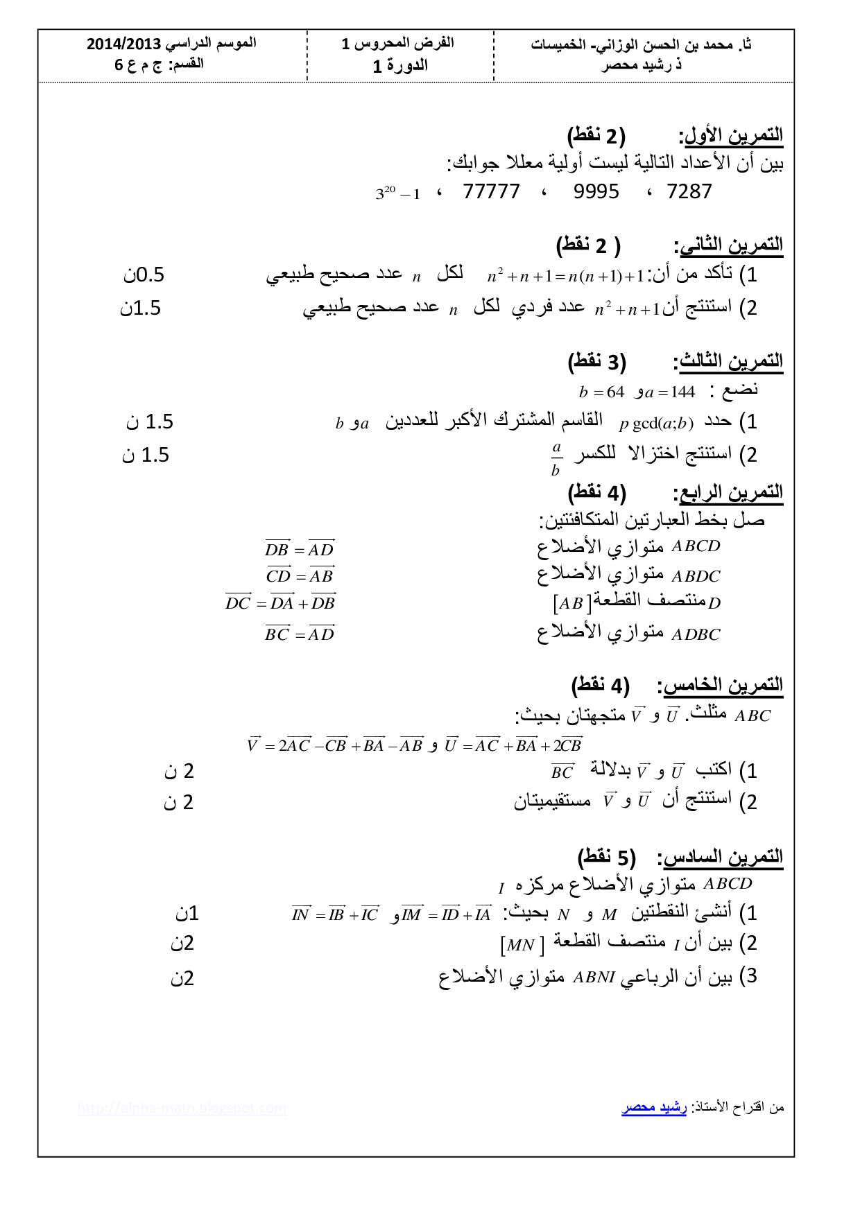 الفرض 1 نموذج 5 - الرياضيات جذع مشترك الدورة الأولى