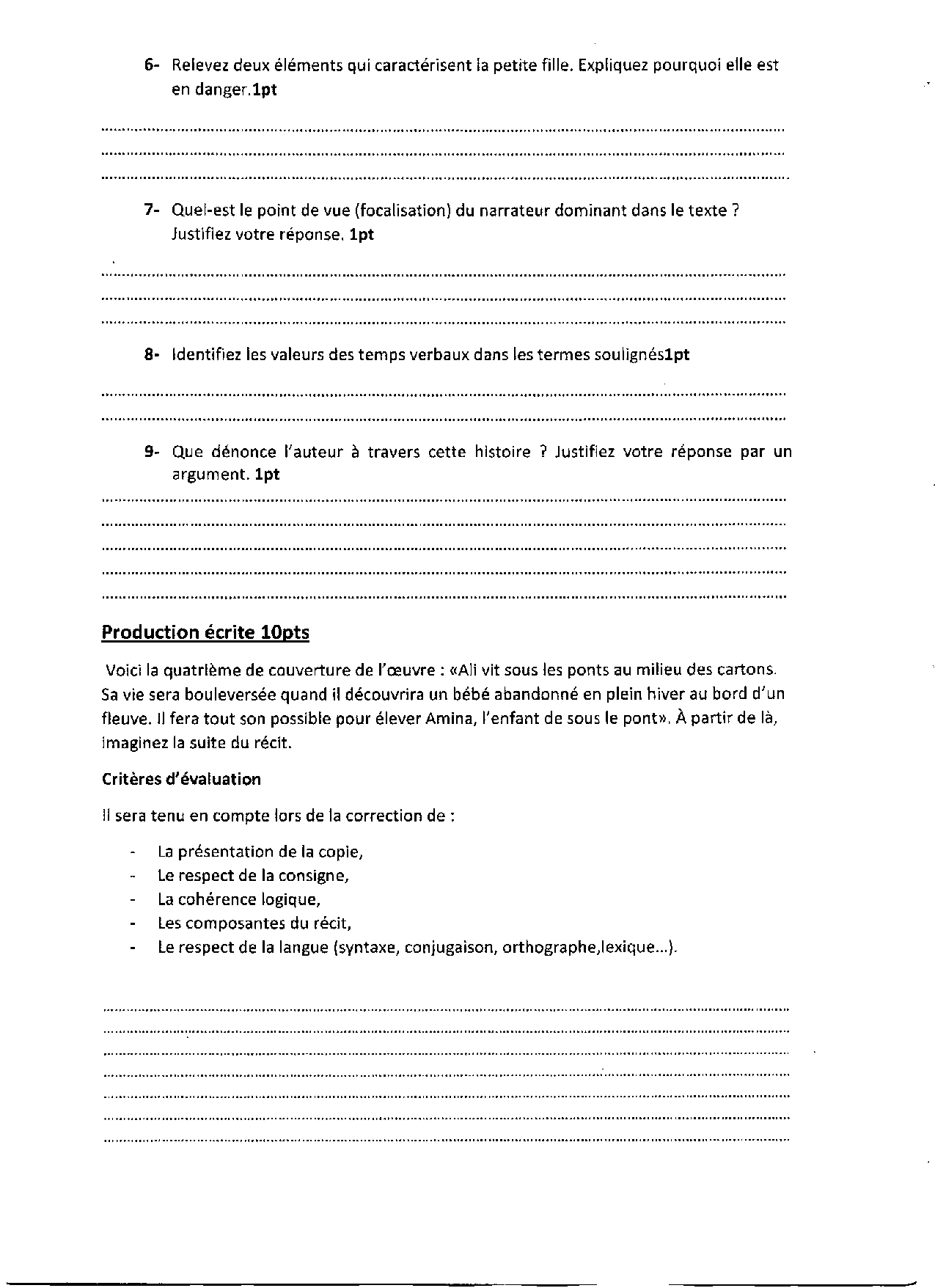 Devoir 1 Modèle 3 - Français Tronc commun Semestre 1