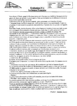 Devoir 1 Modèle 7 - Français Tronc commun Semestre 1