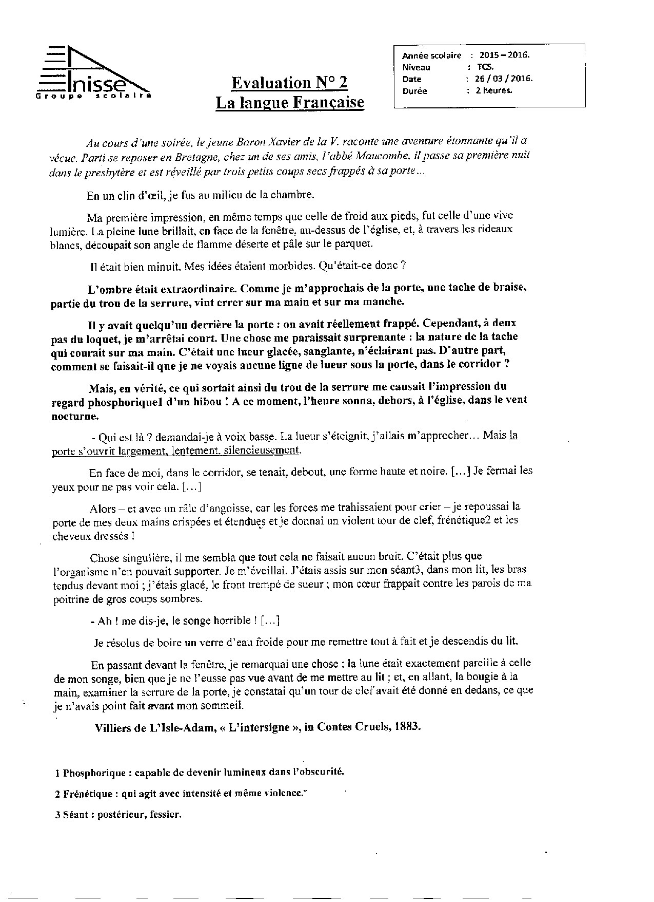 Devoir 1 Modèle 4 - Français Tronc commun Semestre 2
