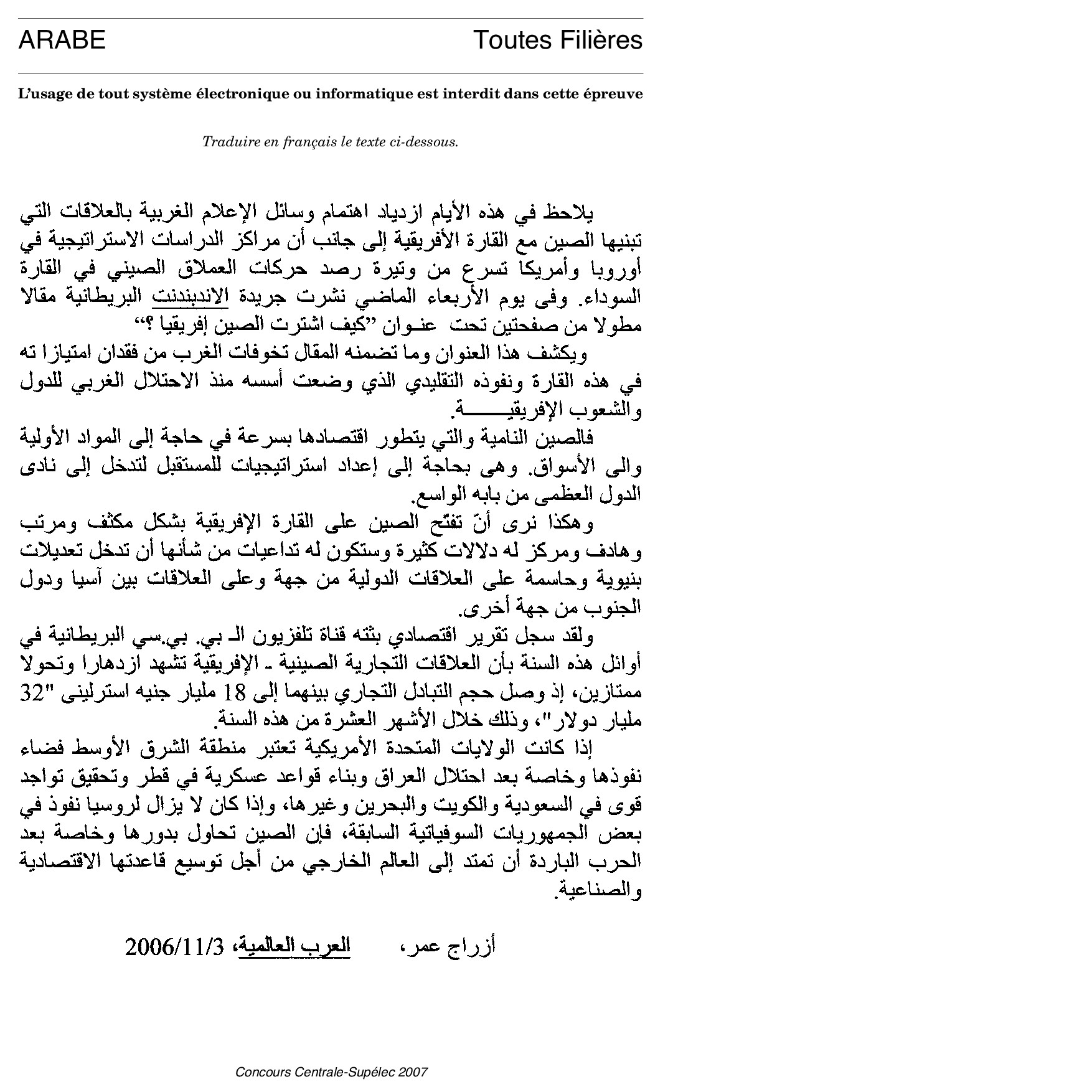 Centrale-Supelec Langues vivantes 2007