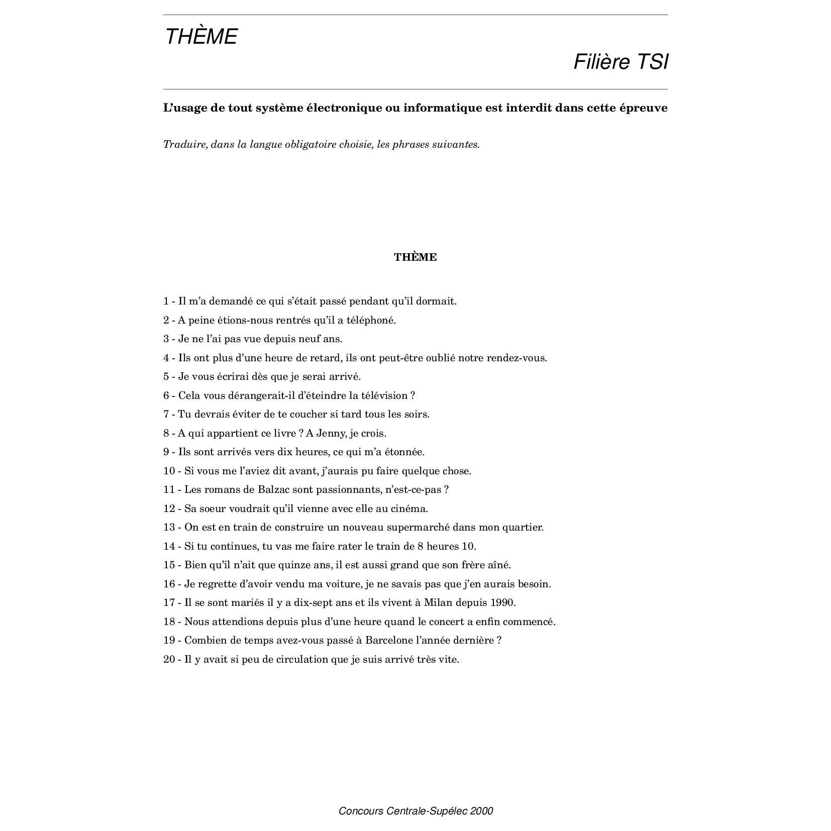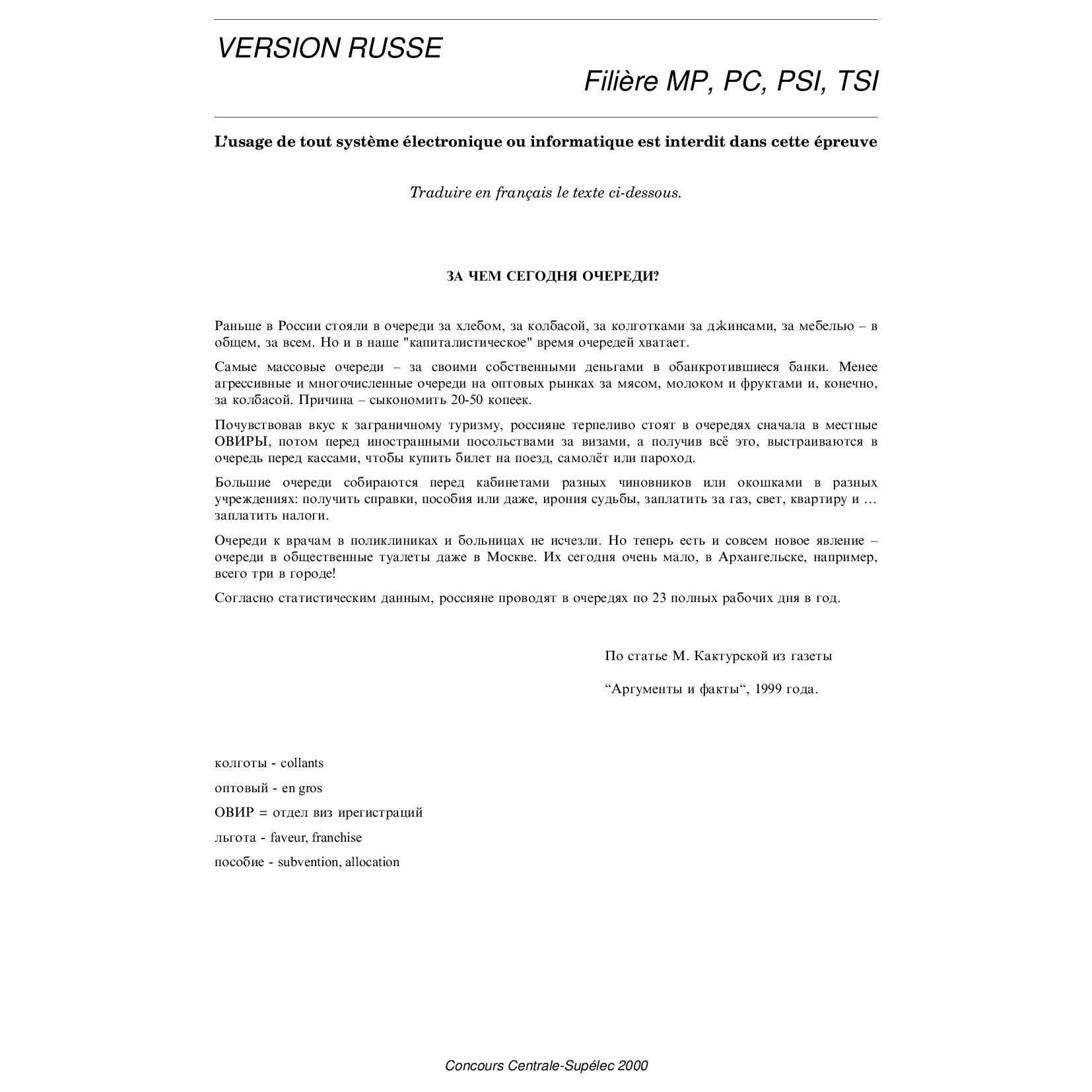 Centrale-Supelec TSI 2000 Langues vivantes