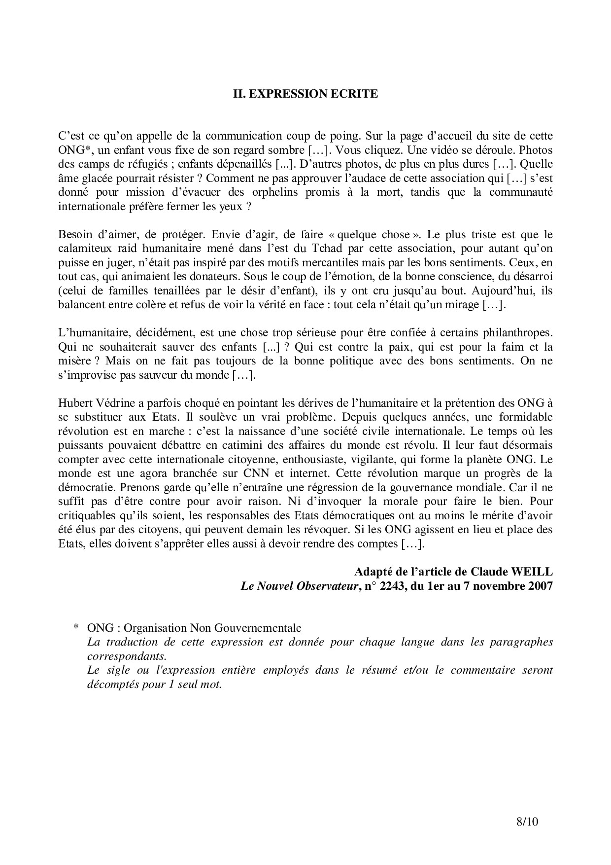 CCP 2008 Langues vivantes (Obligatoire)