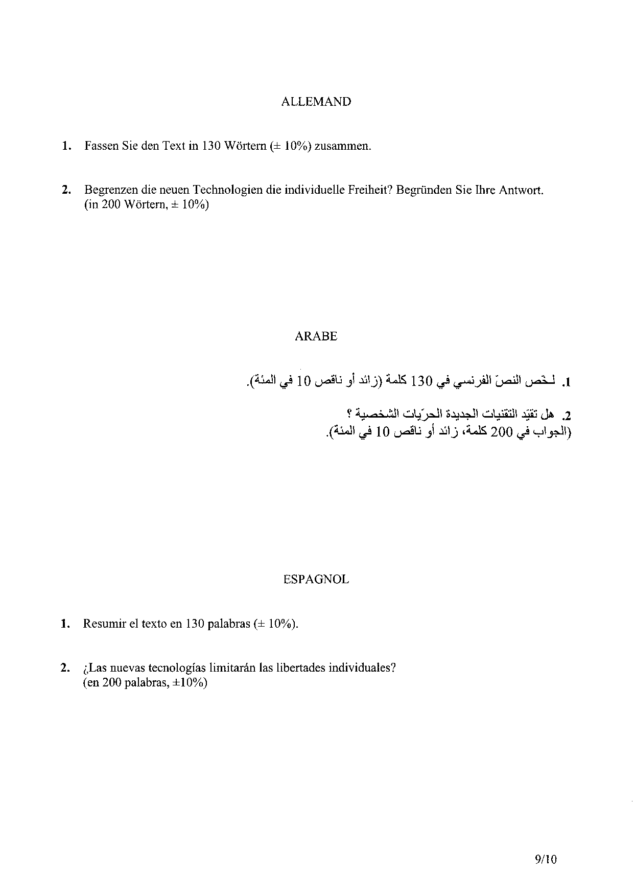 CCP 2010 Langues vivantes (Obligatoire)
