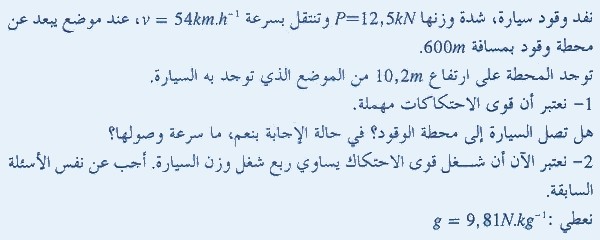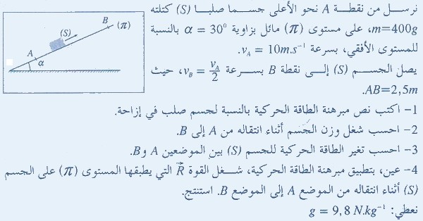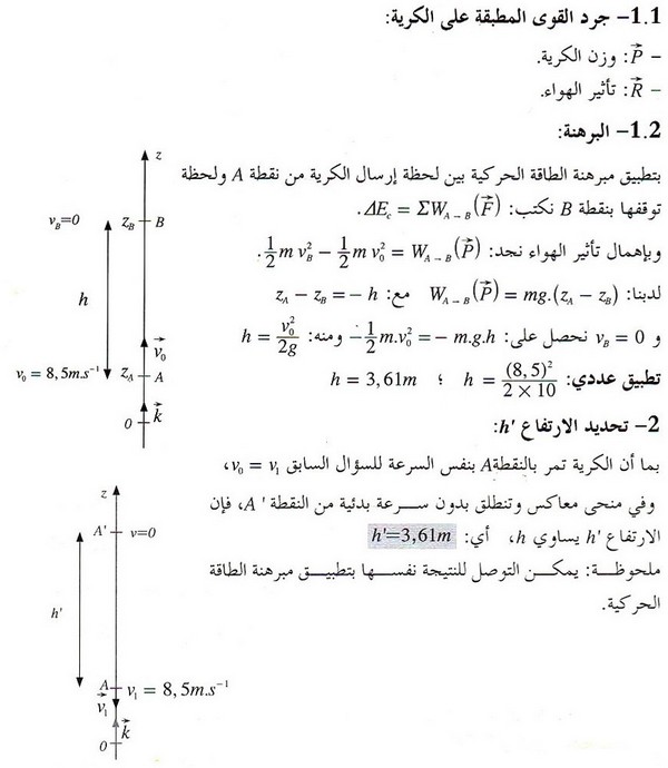 تمارين محلولة : الشغل وطاقة الوضع الثقالية - الطاقة الميكانيكية