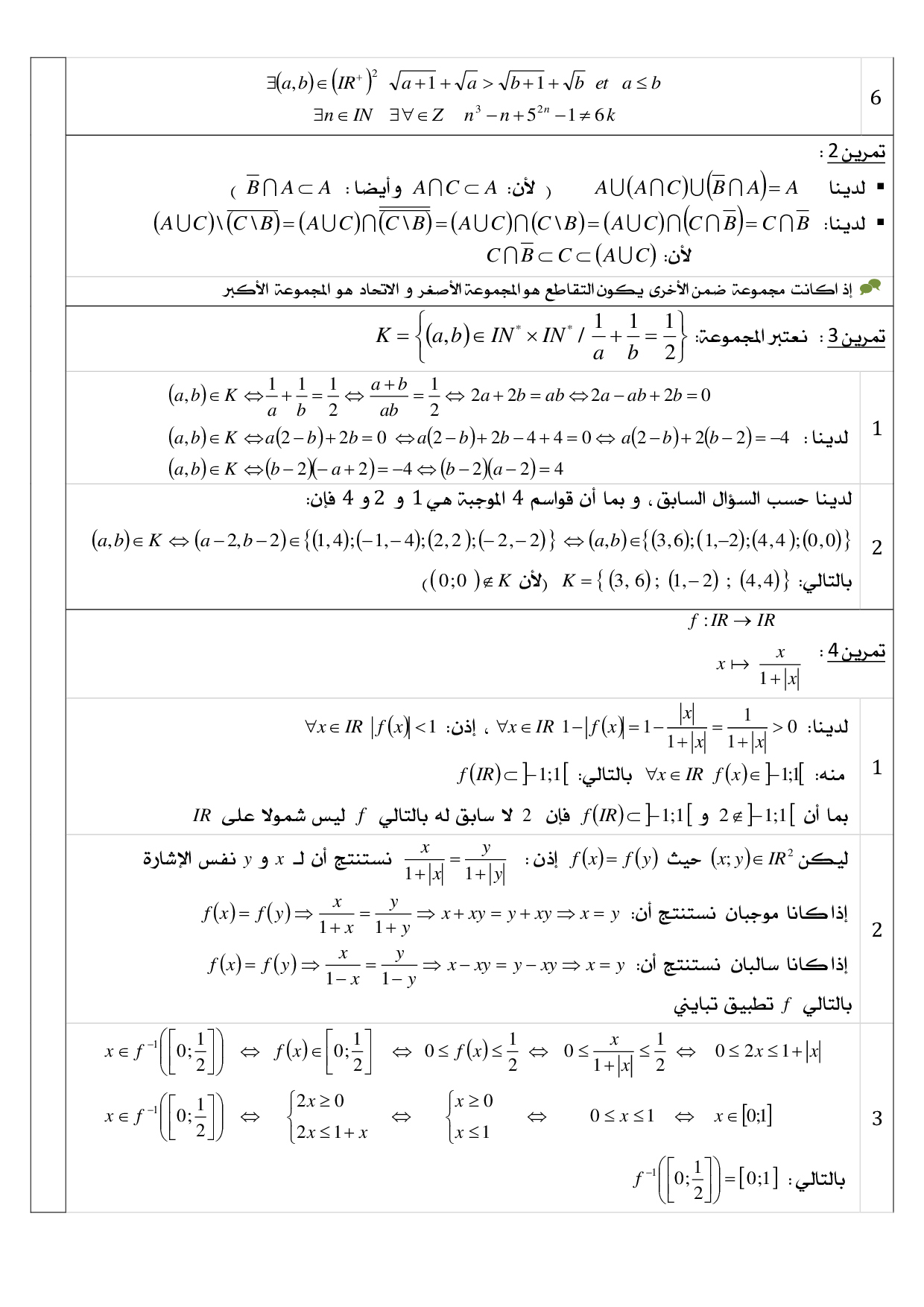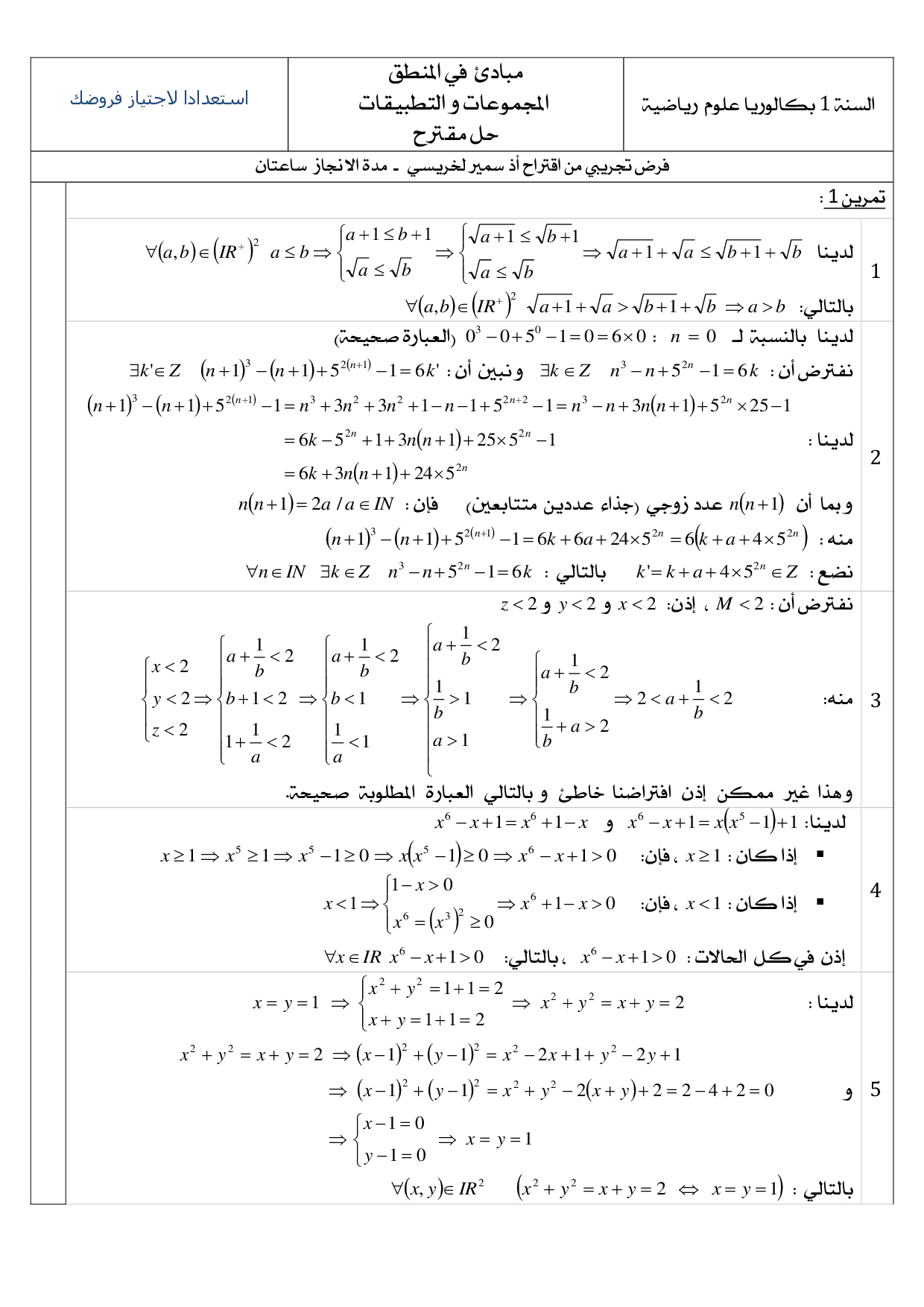 الفرض 1 نموذج 2 - الرياضيات أولى باك علوم رياضية الدورة الأولى (التصحيح)