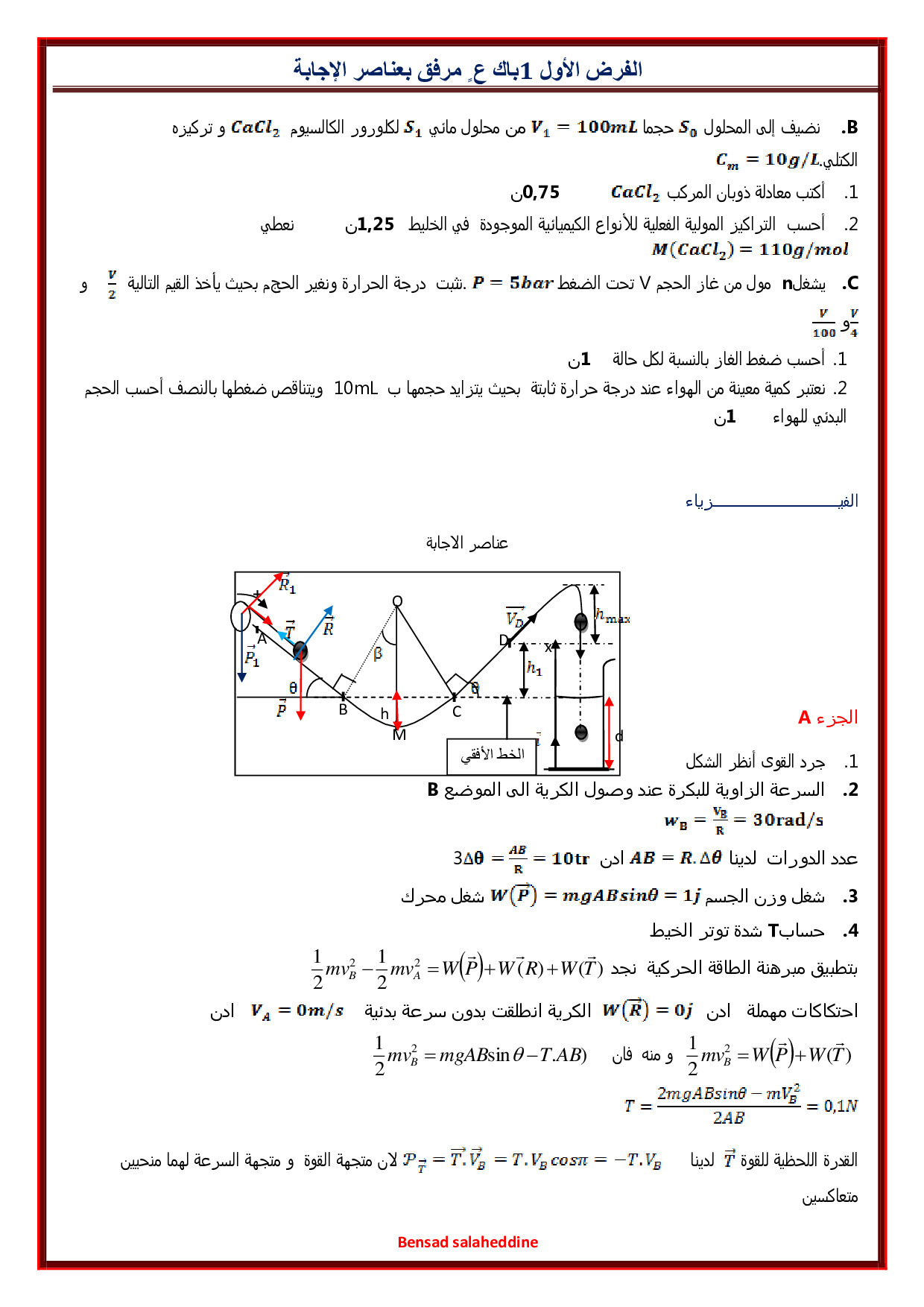 الفرض 1 نموذج 1 - الفيزياء والكيمياء أولى باك علوم تجريبية الدورة الأولى (التصحيح)