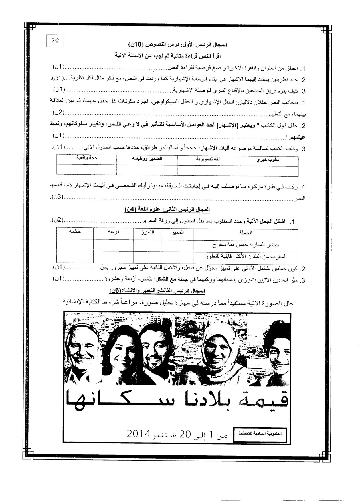 الفرض 1 نموذج 6 - اللغة العربية أولى باك الدورة الأولى