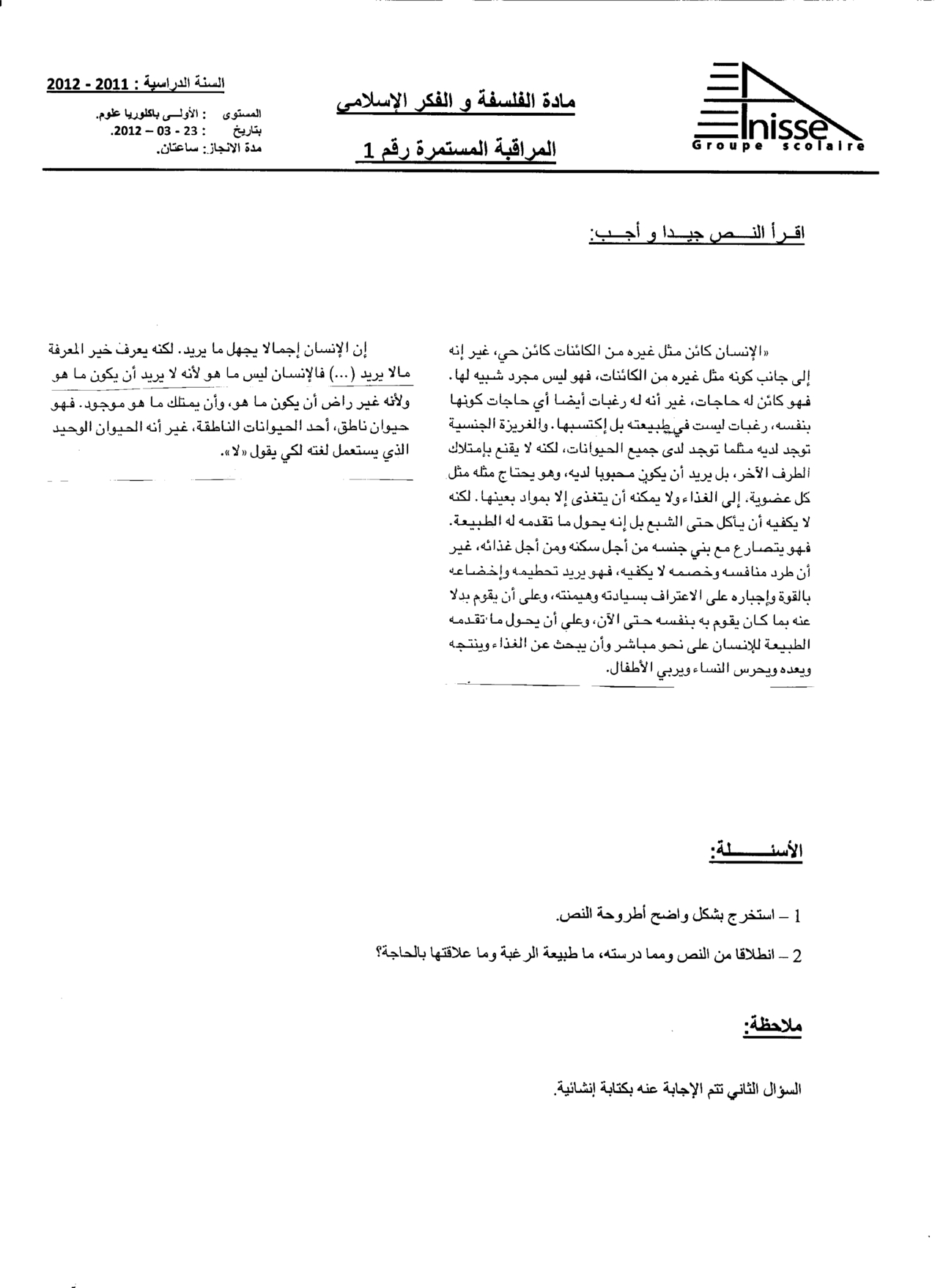 الفلسفة: الأولى باك علوم وتكنولوجيات كهربائية