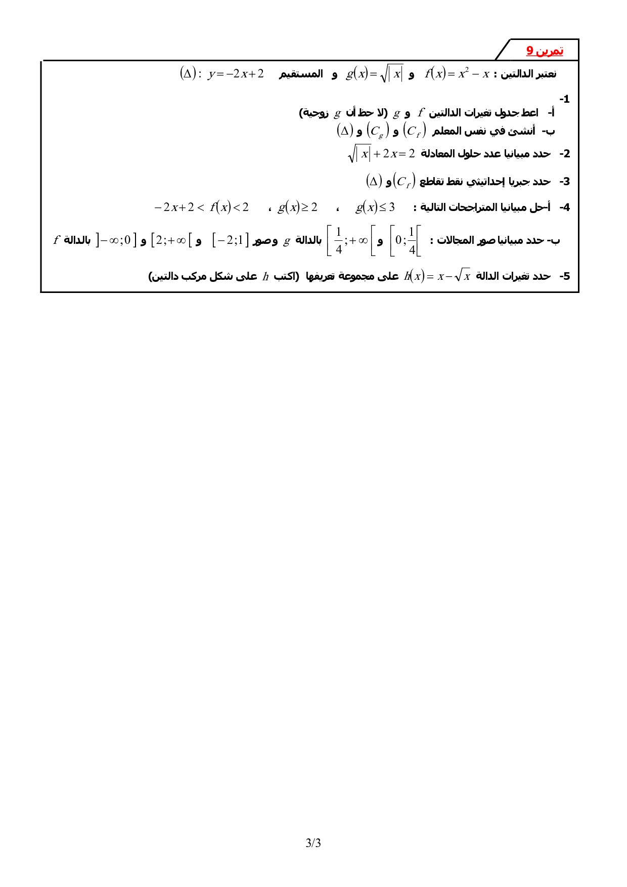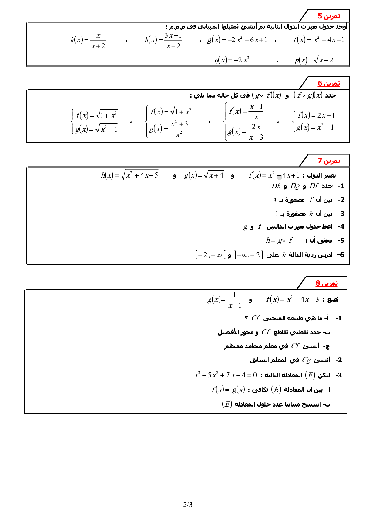عموميات حول الدوال العددية - سلسلة التمارين 3