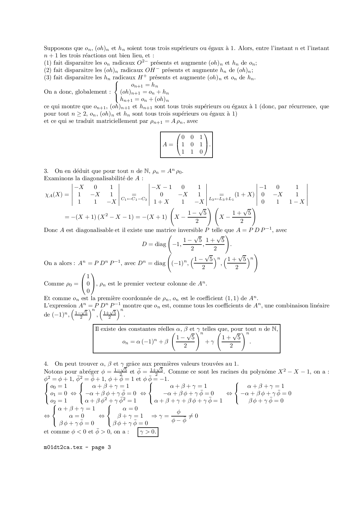 Banque PT 2001 Maths 1B Corrigé