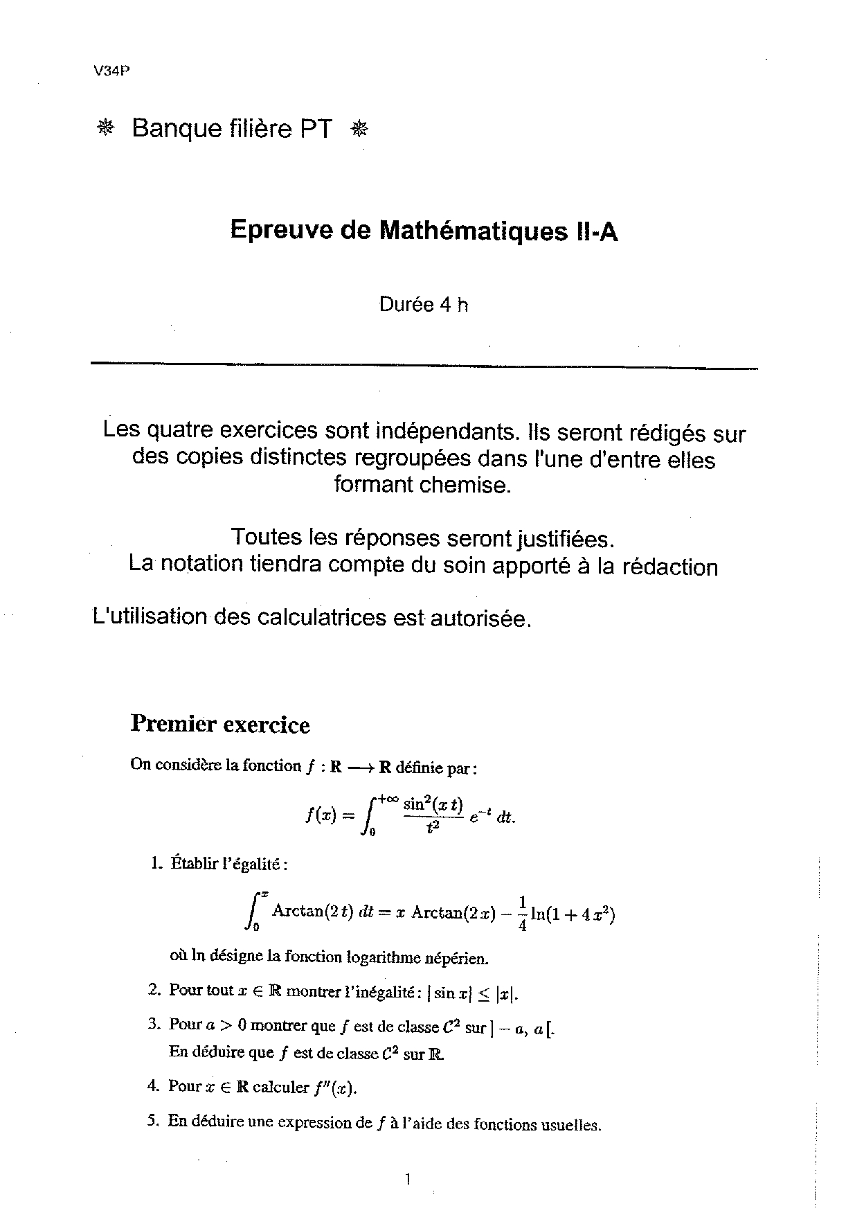 Banque PT 2002 Maths 2A Epreuve