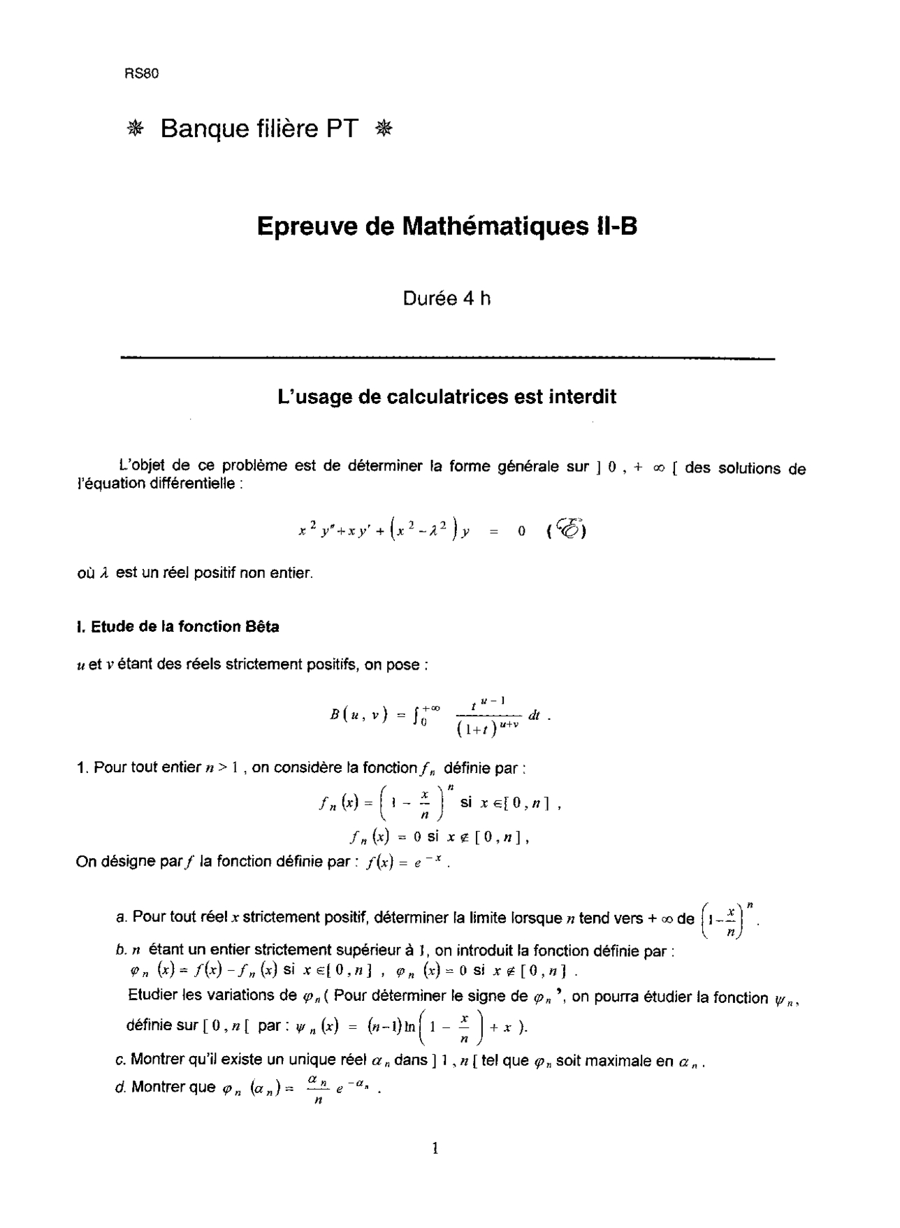 Banque PT 2004 Maths 2B Epreuve