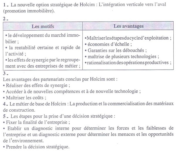 Autres options stratégiques (diversification, spécialisation, intégration...)